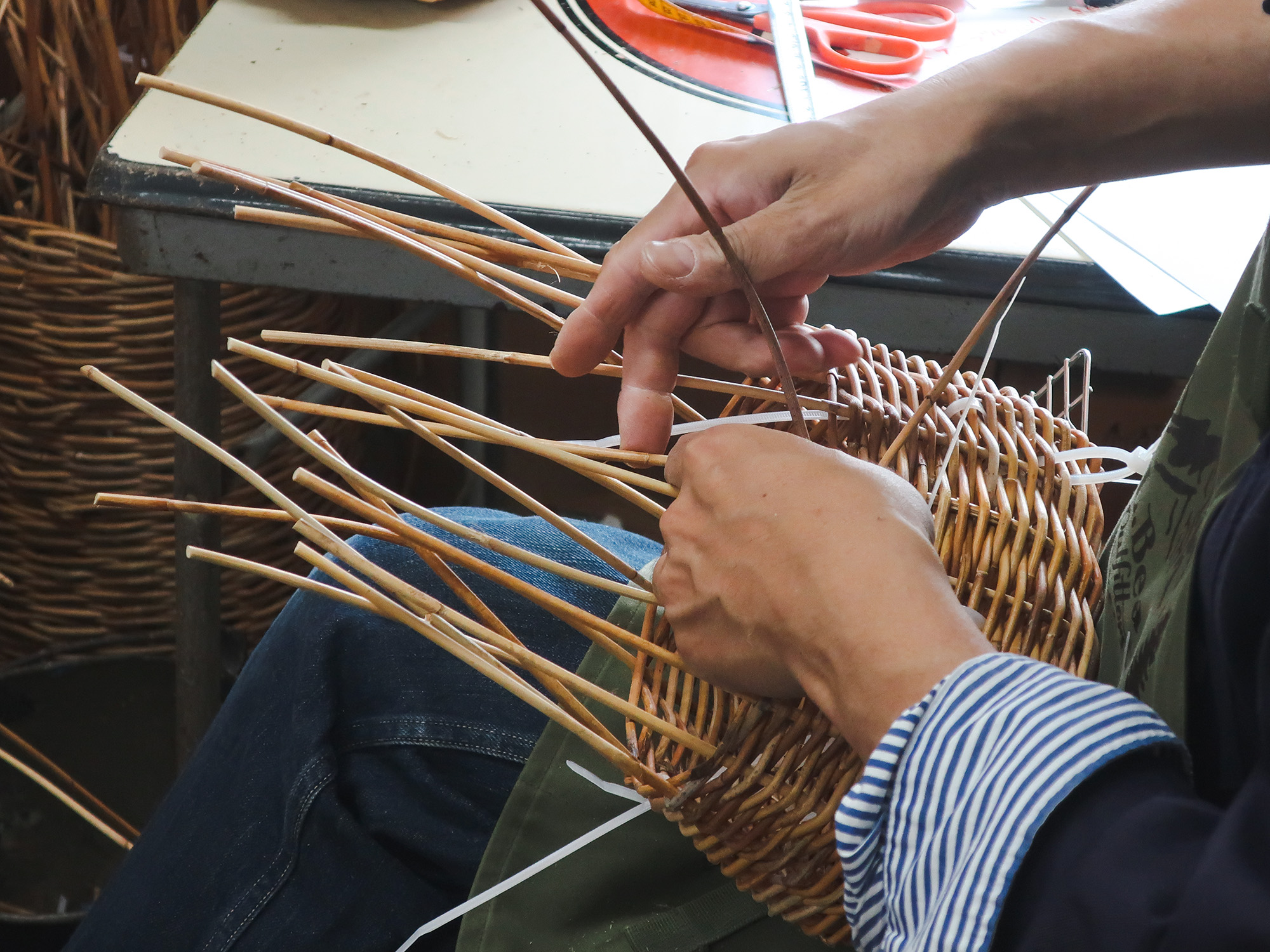 天然素材を扱う制作の日々は、予想外の連続だ。紅籐は一晩水に浸して柔らかくしてから編むが、季節や湿度によって仕上がりが変わる。「予定通りにいかないからこそ、“じゃあこうしてみよう”という発想が生まれる」。失敗やアクシデントすら楽しむ姿勢は、工場全体の空気にも表れている。