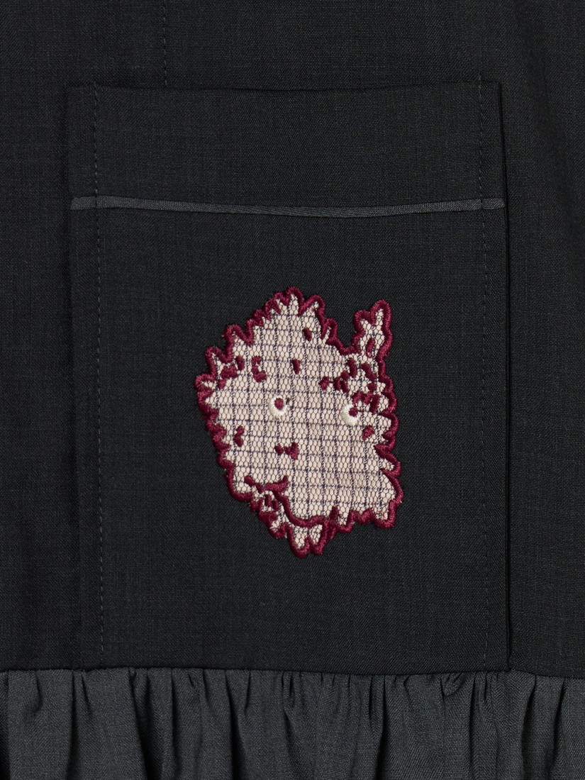 確かな技術による手仕事の細やかさと、思わずくすっとしてしまう遊び心とが同居した、D-dueならではのディテールです。こっそり裏地に"MOSSY"がいることも。異素材をくみあわせたテキスタイルの表情のコントラストもたのしいですね。