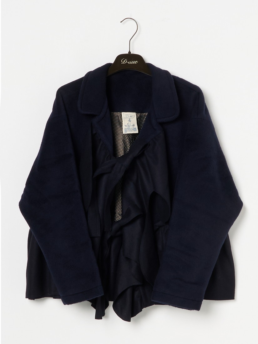 上質な生地を贅沢に使うことで生まれるドレープのドラマティックな動きは、D-dueの拠点である歴史あるドレスメーカーから継承された魅力でありD-dueらしさを構成する要素のひとつです。