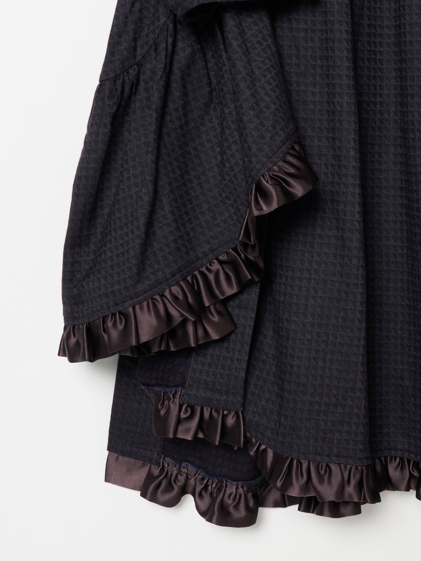 裾や襟に流れるドレープに、滴る水のデザインが施されているアイテムたち。上質なテキスタイルとD-dueらしい遊び心のダンス。裾を揺らして歩きたくなるたのしいディテールです。