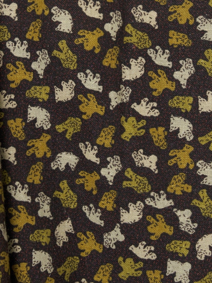 2025年秋冬コレクションでは苔の妖精"MOSSY"が生まれました。上質なテキスタイルにデザイナーの手による"MOSSY"ドローイングをのせています。