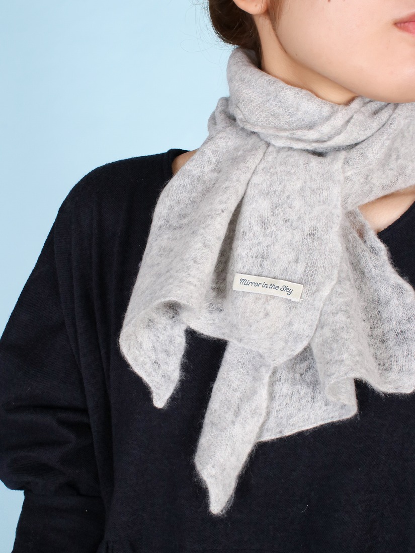 繊細な編み地が空気を含み、羽のように軽やかに首もとを包んでくれます。日常に心地よく寄り添う、カシミヤ100%のミニスカーフです。