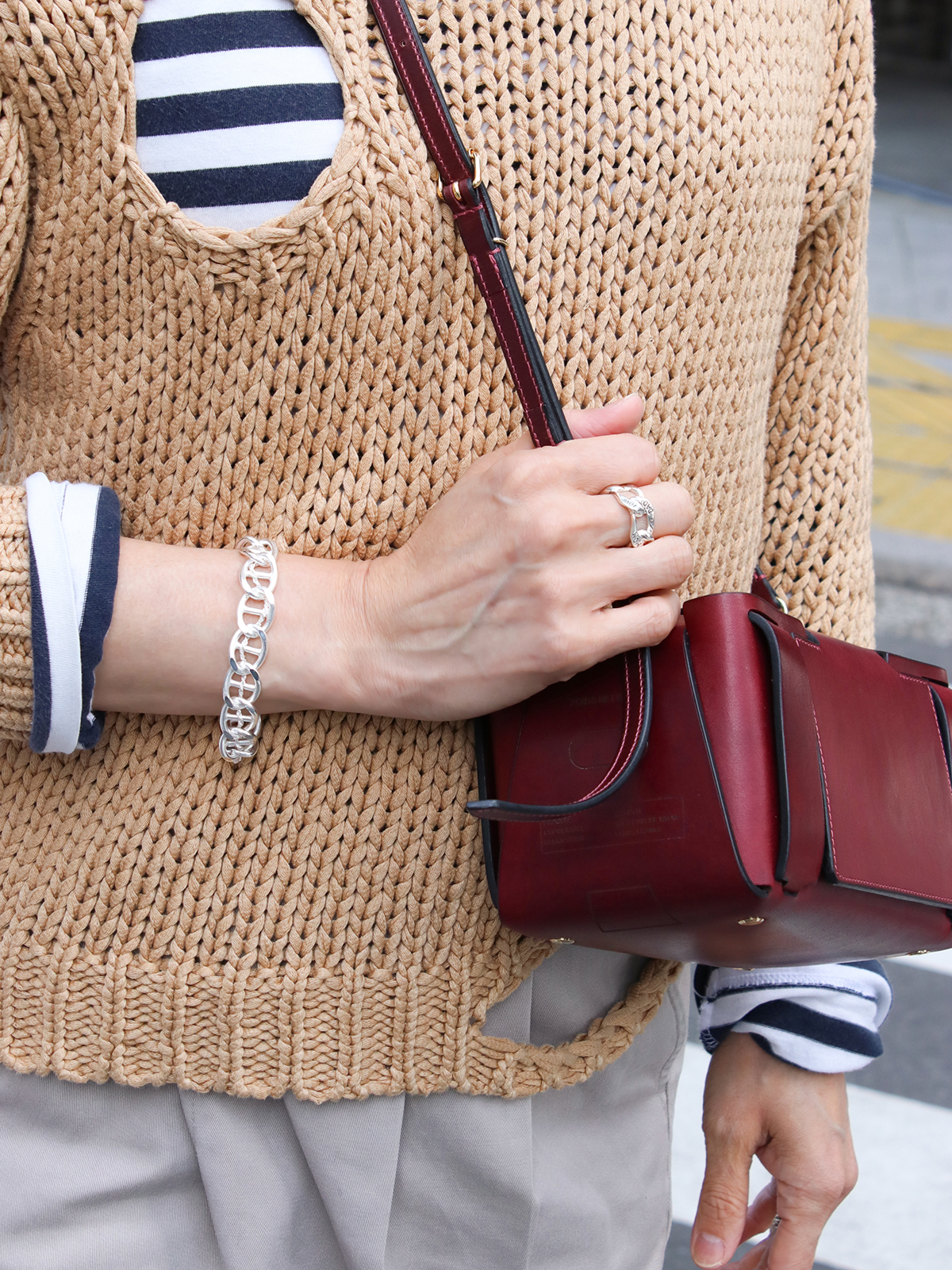 エッジの効いたシルバージュエリーが、大人らしい抜け感をプラスしてくれます。