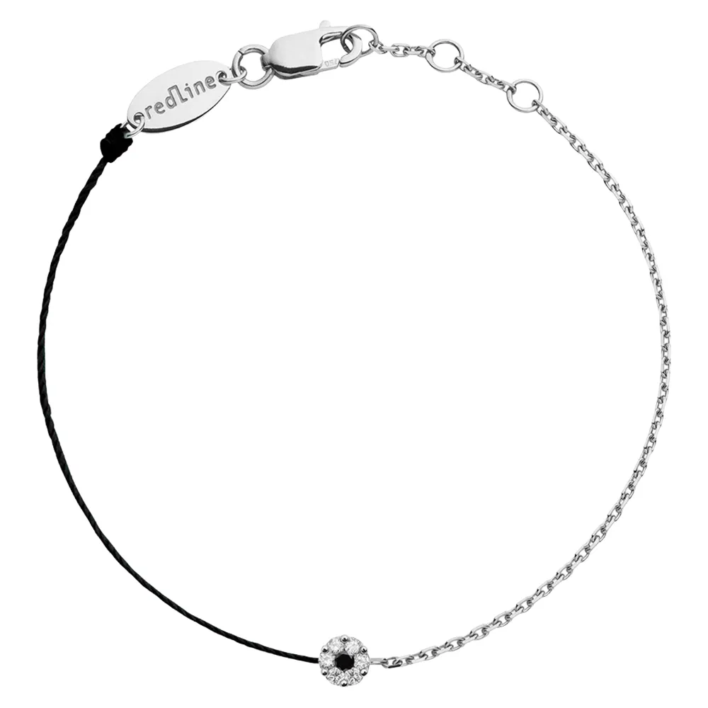 中央にブラックダイヤモンドを配し、守護と独自性を象徴。糸は「時の糸」、ダイヤモンドは「永遠の強さ」を象徴し、角度によって花や星のモチーフのようにも見えるデザインです。