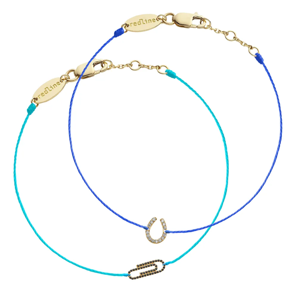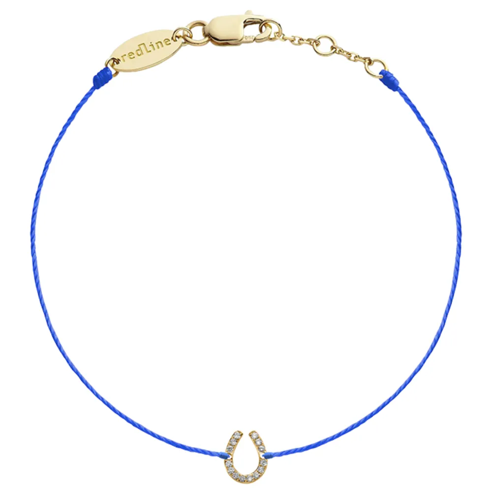 輝くダイヤモンドを敷き詰めた馬蹄モチーフが、日々にそっと幸運を添える、繊細で印象的なブレスレット。爽やかなブルーのコードが、洗練された印象と程よいインパクトをプラスします。