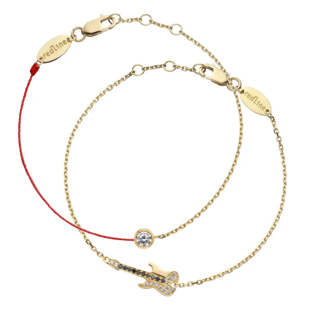 手元で光を反射するブラック&ホワイトダイヤモンドのロックンロールギターモチーフが、遊び心と華やぎをそっと添えるブレスレット。日常に、ほんの少しのロックなスパイスが加わります。