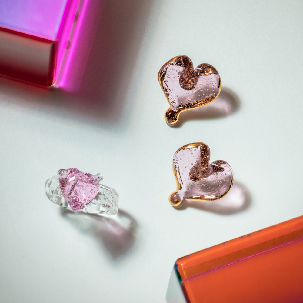 日本のブランド LUCE MACCHIA(ルーチェ マッキア)は、ガラスの透明感と光のゆらめきで‵‵LOVE"を表現。心の温度や優しさを映す 淡いピンクトーンのハートドロップピアスに加え、ハートの宝石を爪留めしたようなソリティアリングが登場。ガラスの中に宿る小さな光は、誰かを想う愛のかたち。身につけるたび、自分を大切にする気持ちや、あたたかなつながりを思い出させてくれる。(リング 25,300円、ピアス 20,900円)