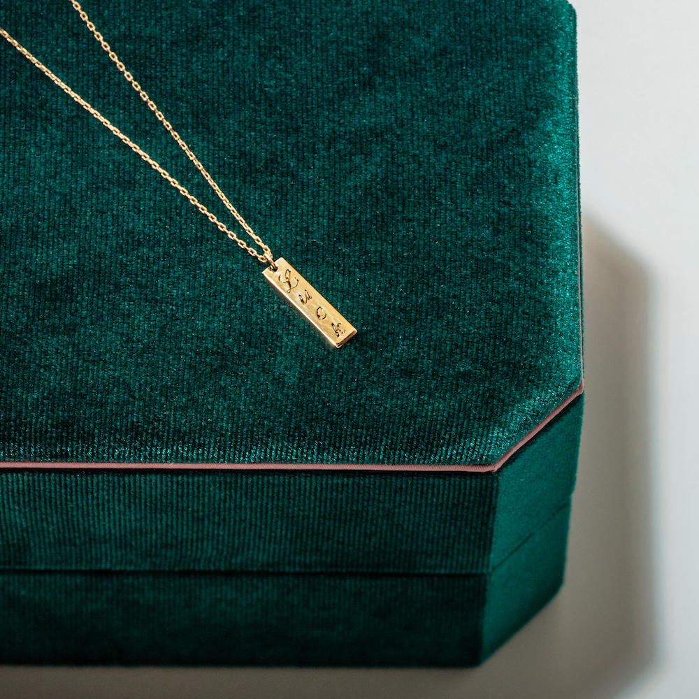 18Kゴールドの繊細なチェーンに、縦長プレートを組み合わせたSweet Pea(スイート ピー)のミニマルなネックレス。プレートには、“Luck(幸運)”の文字を刻印。これからの人生に穏やかな光が訪れるようにという願いを込めて。素肌に溶け込むゴールドが、首元で上品な存在感を放つ。内に宿る想いを映し、日々のささやかな瞬 間に心を静かに整えてくれる、光を纏ったお守りのような存在。(ネックレス 343,200円)
