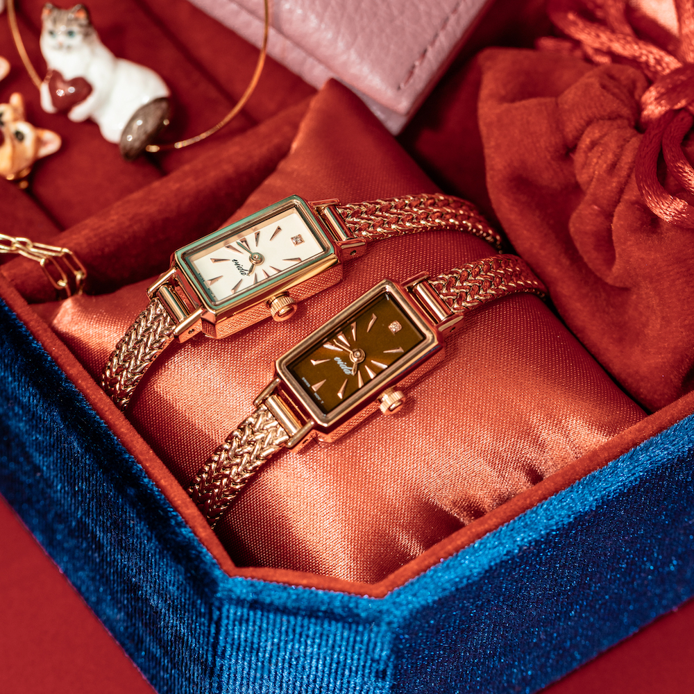 日本の時計ブランド、VIDA+(ヴィーダプラス)から登場したのは、ピンクゴールド×ブラウンフェイスのエレガントな腕時計。穏やかな光を放つピンクゴールドの輝きと、深みのあるブラウンの文字盤が、ヴィンテージジュエリーとも美しく調和する。