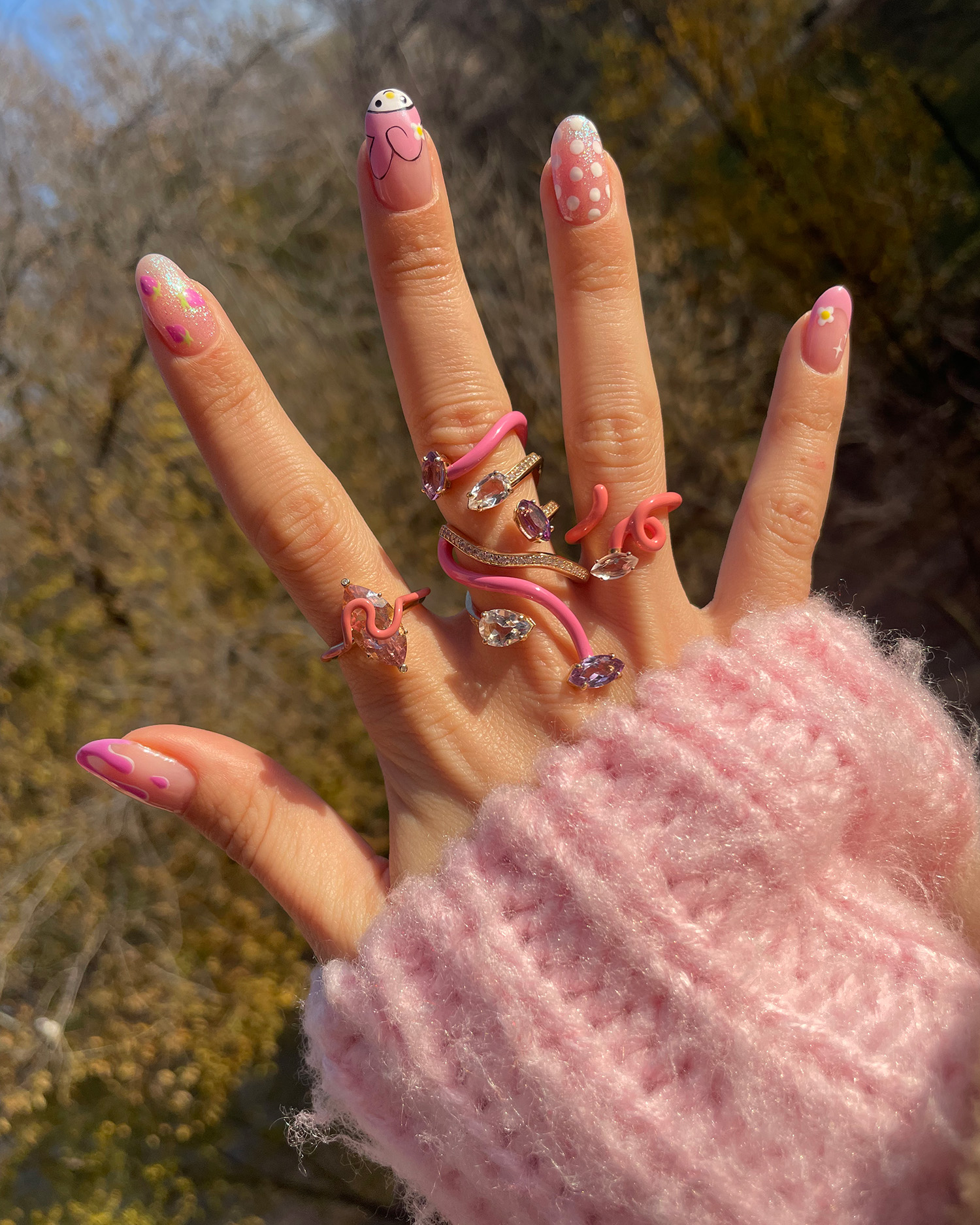 私が大切にしている感情は、“自由への解放”、“驚き”、そして“創造力”です。ジュエリーはただの装飾ではなく、カラフルで夢のような世界へと気持ちを連れていく存在であってほしいと思っています。だからこそ、一つひとつのデザインは、日常の喧騒からそっと離れ、幻想的な世界へと続く「小さなポータル」、いわば“身につける夢”のような存在を目指しています。その瞬間をまとうことで、ほんの少し別の世界を旅するような気分を感じていただけたら嬉しいです。