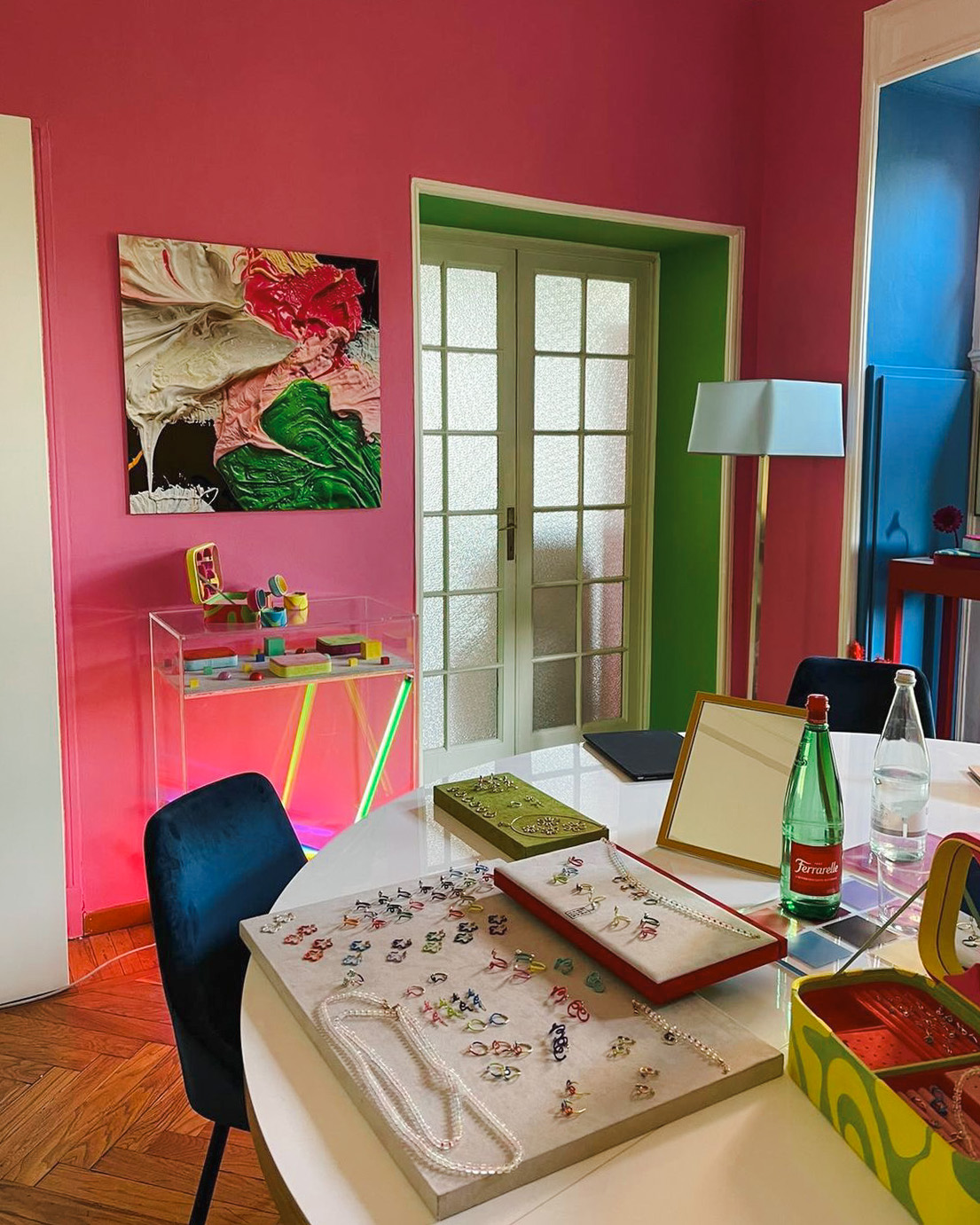 私の個性とブランドのDNAはとても深く結びついているので、アトリエや自宅、そしてショップのすべてに、私のクリエイティブな精神が息づいていると感じます。これらの空間には共通するムードがあり、それぞれが“BB(Bea Bongiasca)らしさ”を体現する場所です。どこにも遊び心があり、カラフルで創造的な糸が全体をゆるやかにつないでいて、その重なりが純粋さを生み出しているのだと思います。