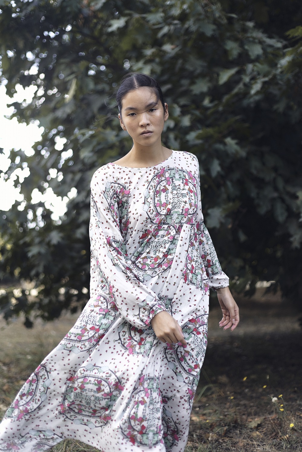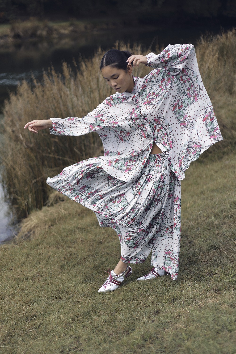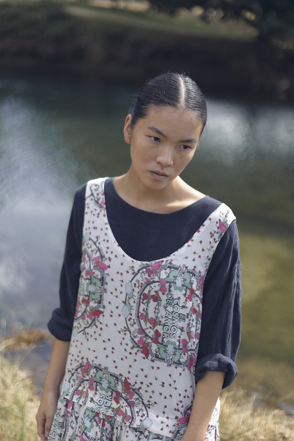 D-dueのデザイナー・アルフレドが40周年のために描き下ろしたアートワークをもとに、キャラクターたちが軽やかに舞うテキスタイルのウェアが誕生しました。