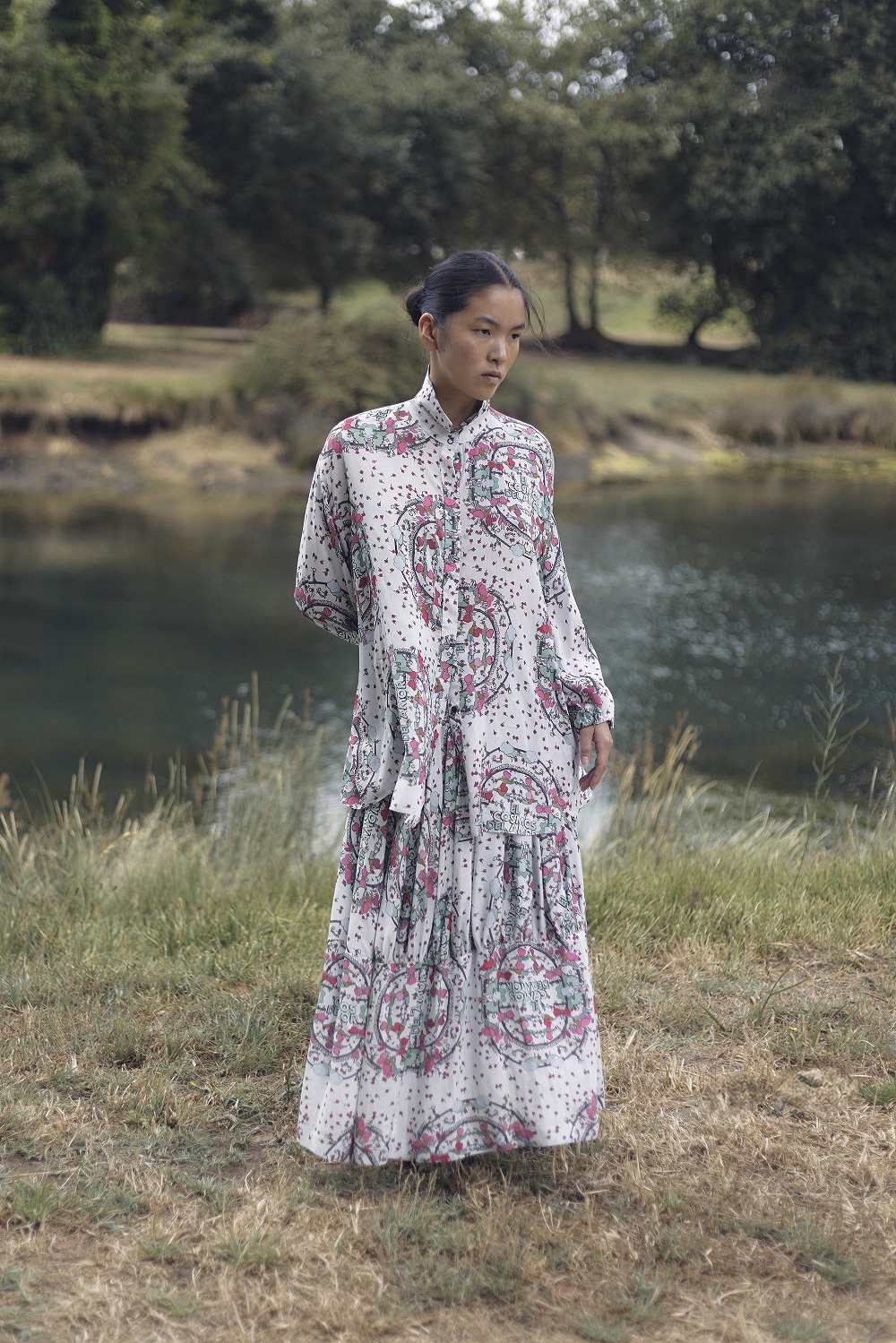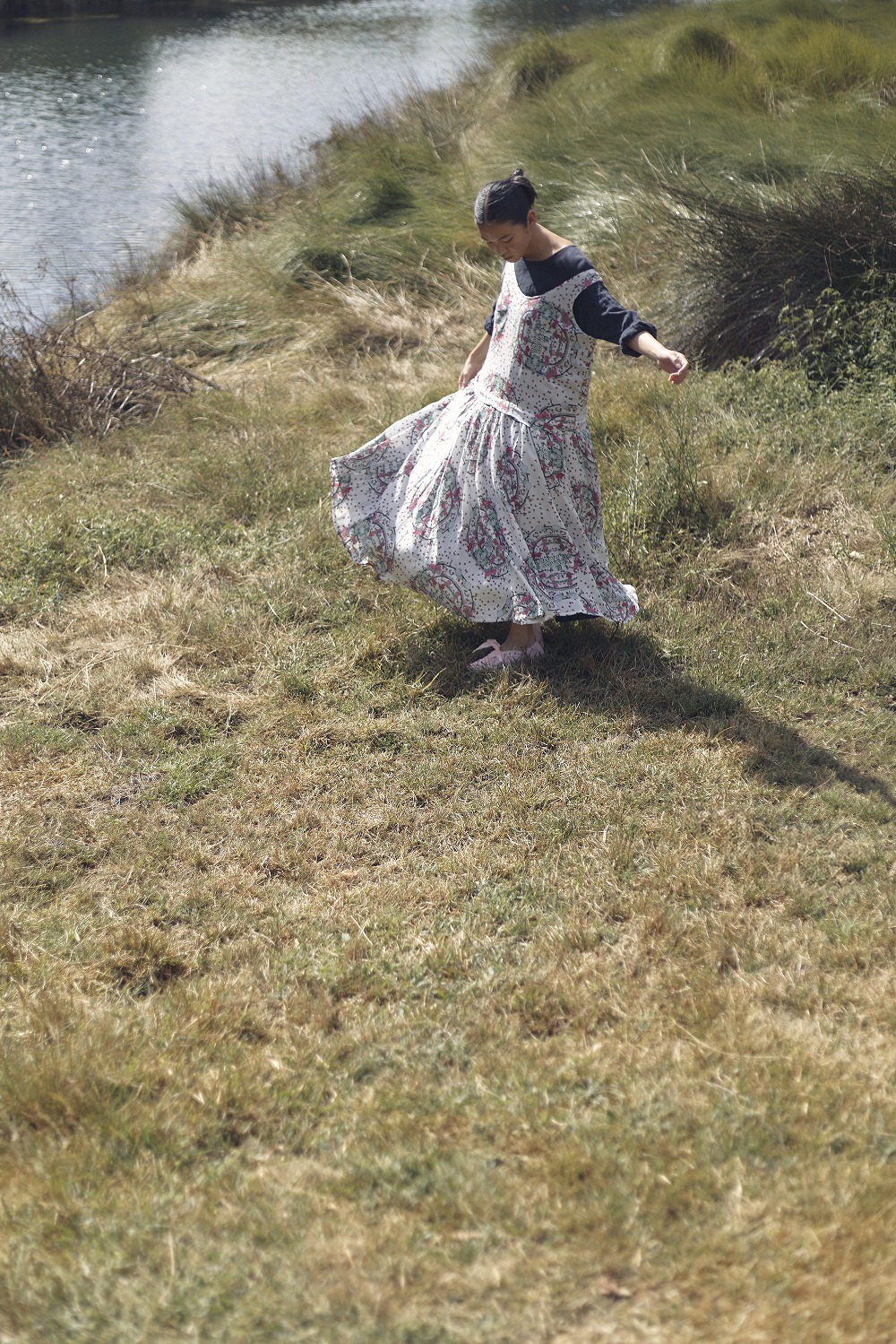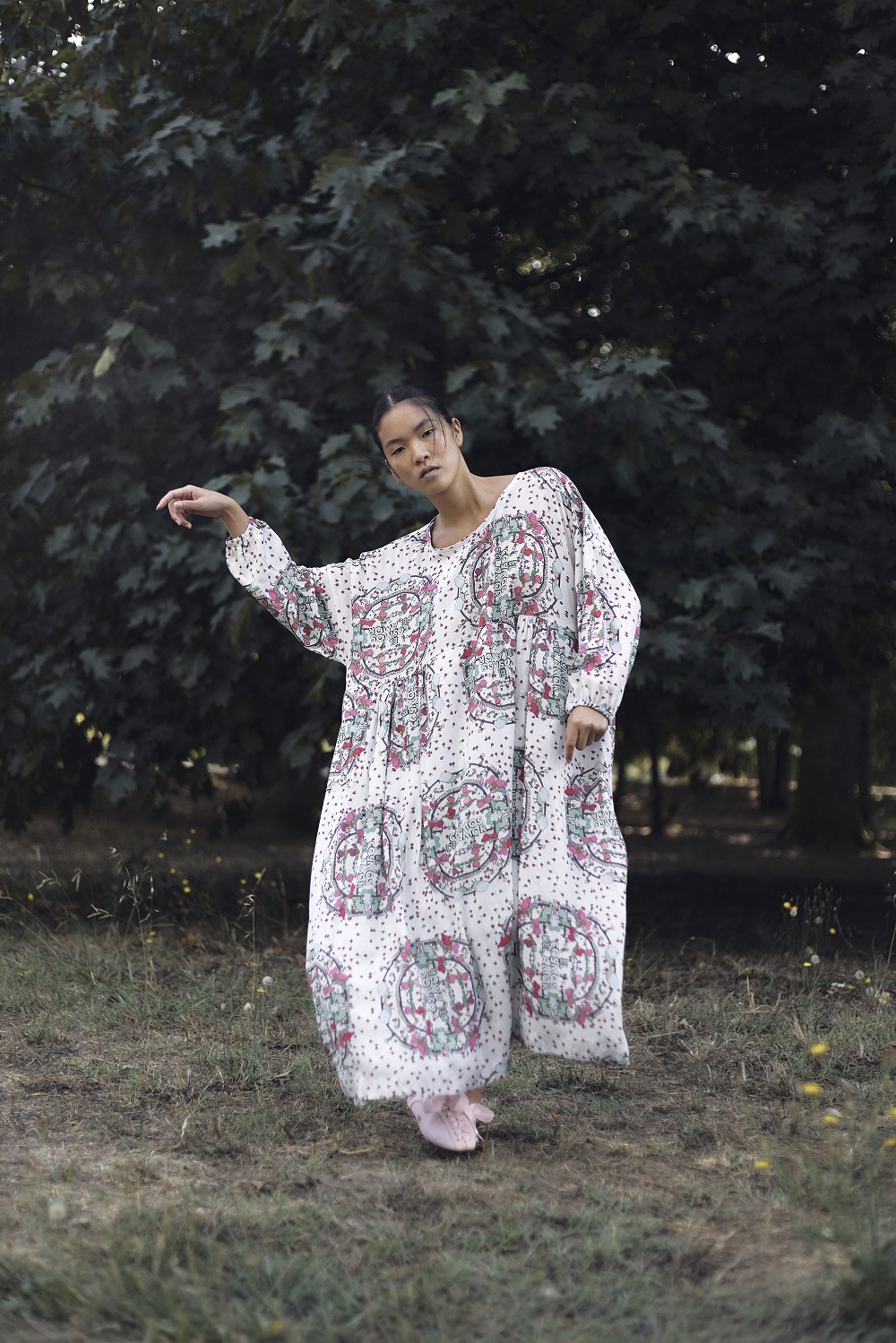 D-dueのデザイナー・アルフレドが40周年のために描き下ろしたアートワークをもとに、キャラクターたちが軽やかに舞うテキスタイルのウェアが誕生しました。