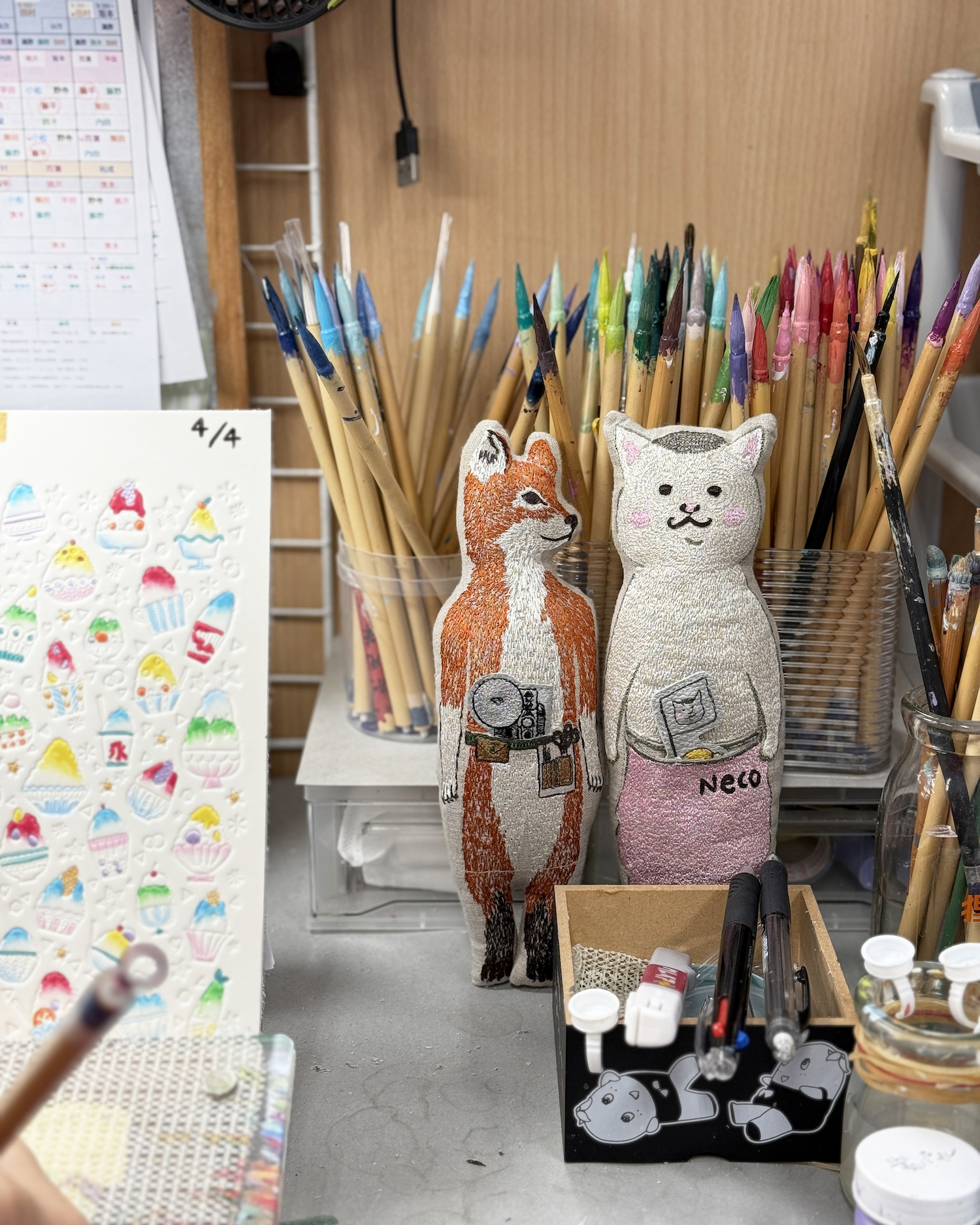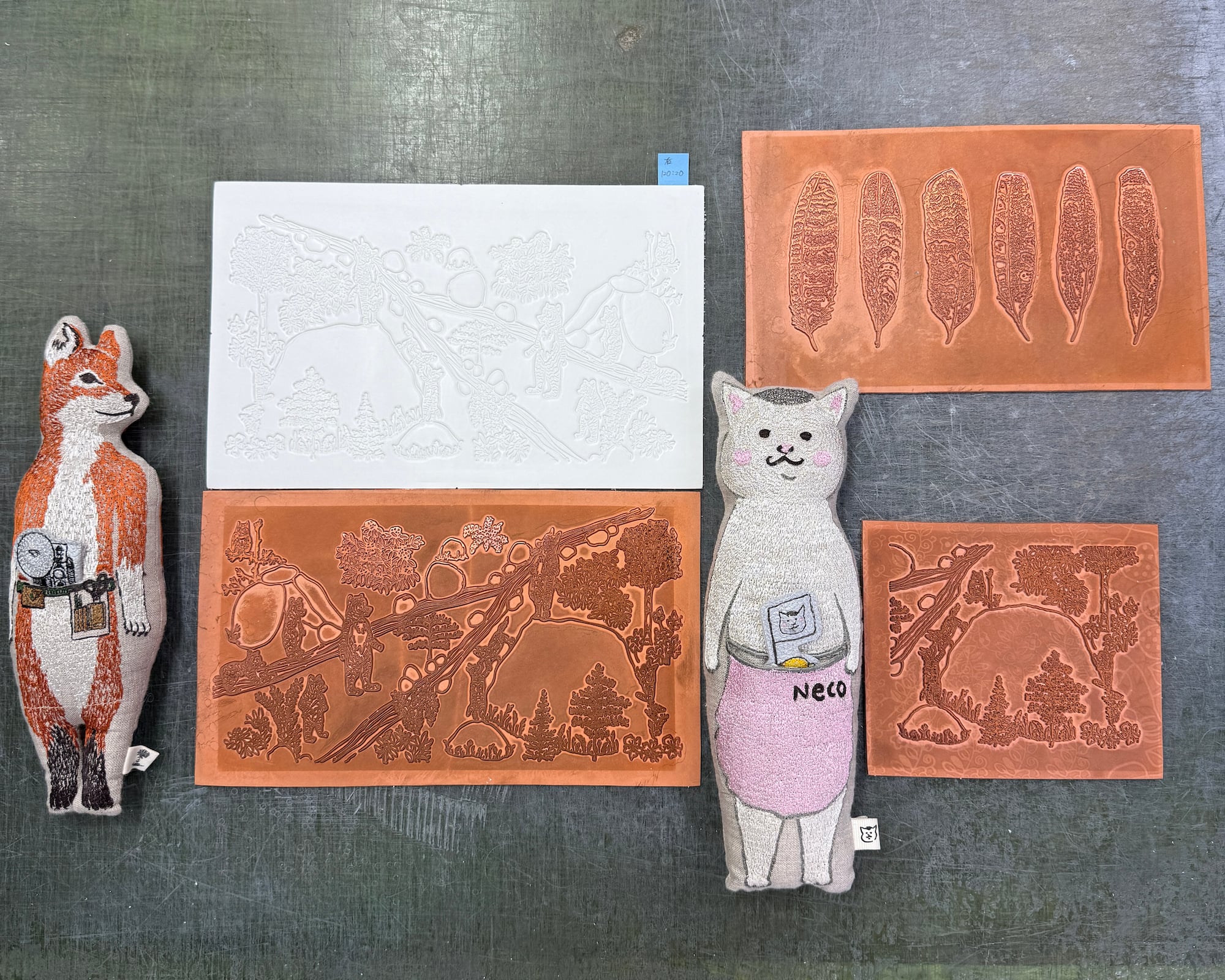 一つ一つのピースをカットし、版で型押し、手描きで彩色し、最後にさび入れを施していく工程。どれもが唯一無二の絵画であり、個々のアーティストに委ねられていることに、本当に感動しました。文庫屋「大関」のチームのみなさまと時間を過ごし、制作過程について多くのことを共有できたことは、東京で過ごした日々のなかでも特に心に残る体験のひとつとなりました。職人のみなさまに心から敬意を表します。そして、H.P.FRANCEのチームがこのコラボレーションのアイデアを思いつき、実現してくれたことに、心から感謝しています。