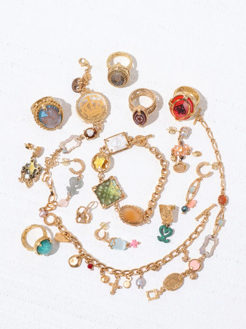 オランダのパワー溢れるジュエリーブランドGEM KINGDOM(ジェム・キングダム) より、 約120点にもおよぶ圧巻のユニークピースコレクションが届きました。今年はブランドの代名詞ともいえるシルバージュエリーに加え、これまでとはひと味違うゴールドカラーのユニークピースも豊富に登場。GEM KINGDOMの新たな一面が垣間見えるラインナップとなっています。デザイナーが厳選したオリジナルのアーカイブパーツを用い、一点一点、特別に制作されたジュエリーたち。ブランドのヒストリーと自由なクリエーションが交差する、まさに “今” しか出会えない特別なラインナップです。すべてが一点もののため、出会いはまさに感性が引き寄せ合うような出会い。GEM KINGDOMならではの世界観を、どうぞお楽しみください。