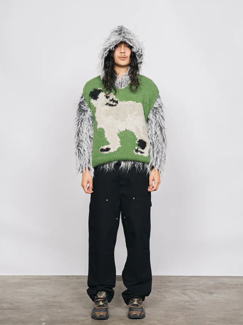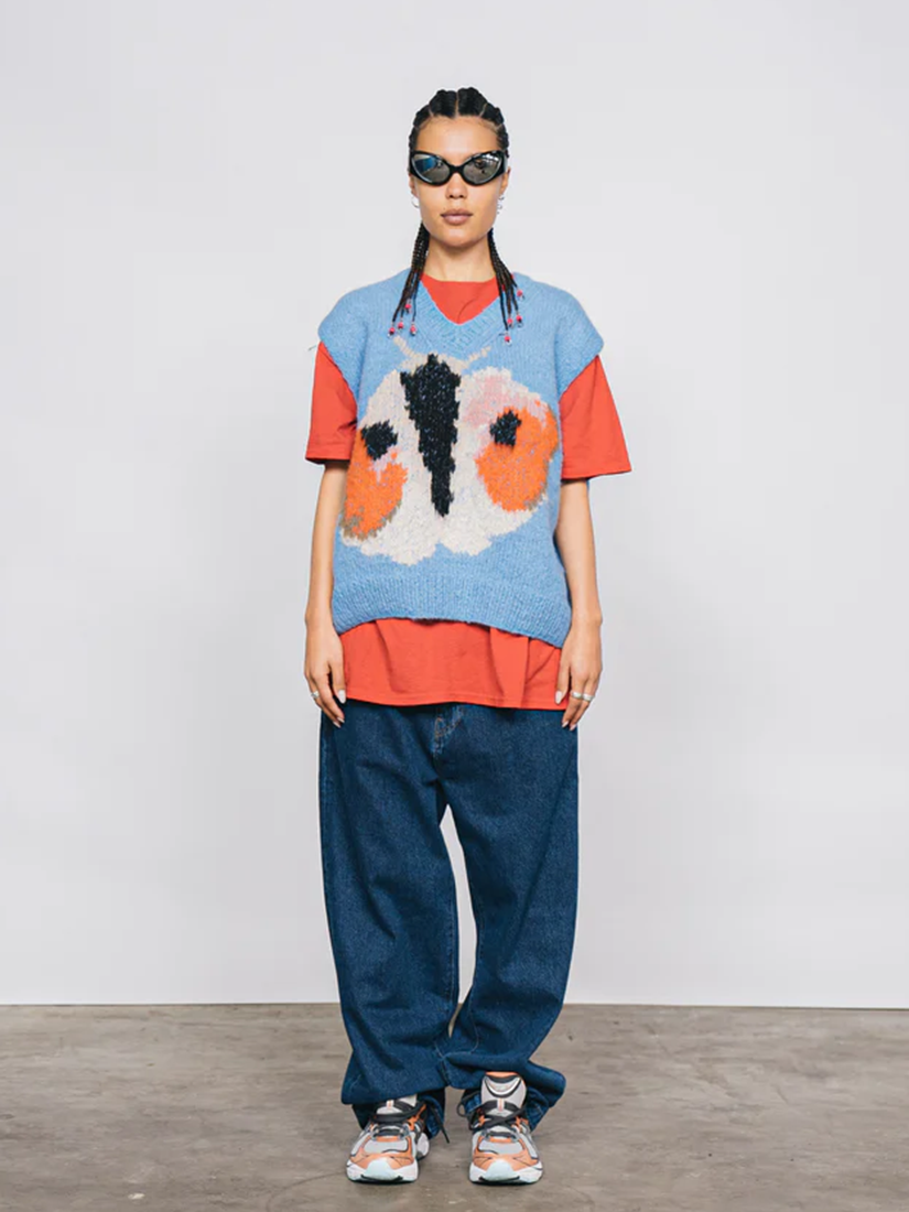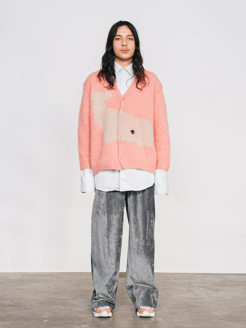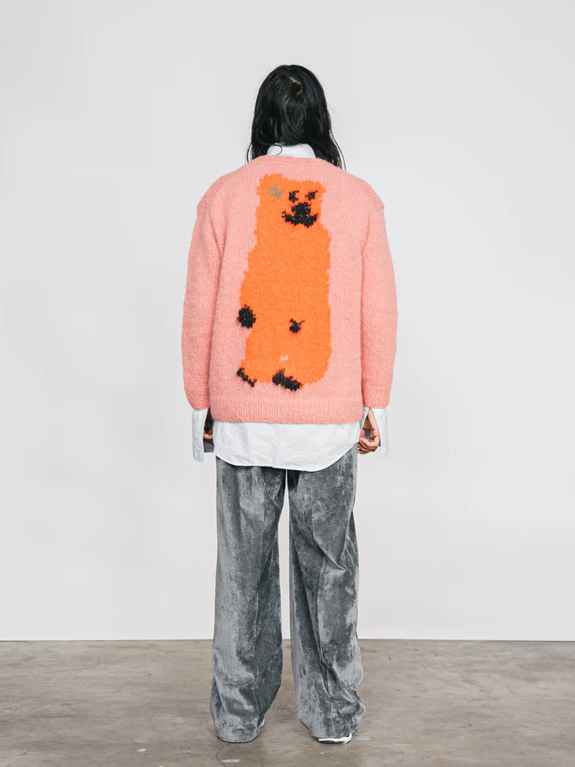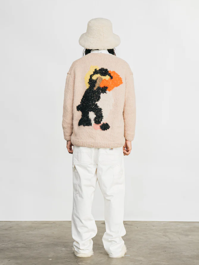 にじむタッチが持つ独特な雰囲気を、そのままニットに落とし込んでいます。