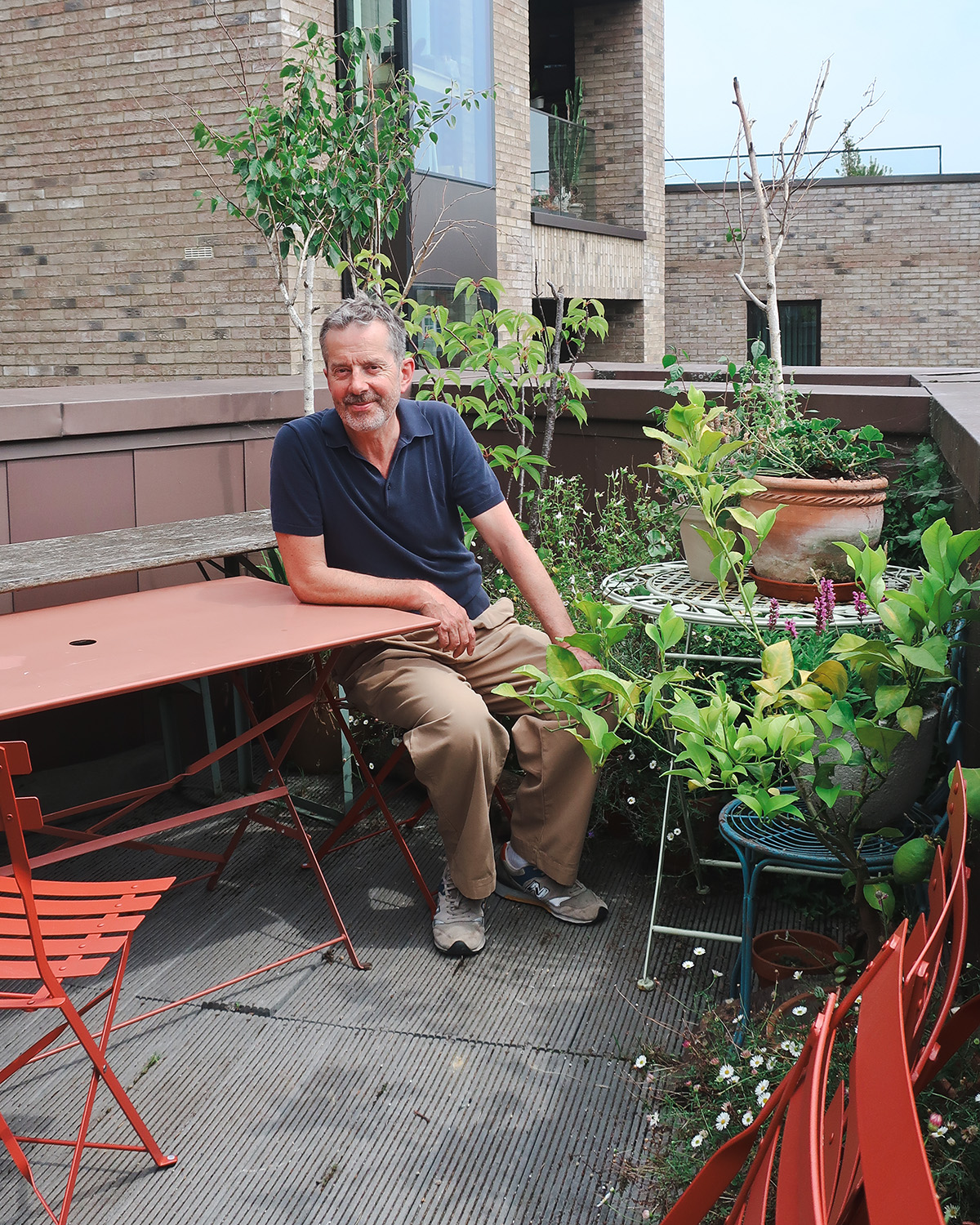 スタジオ屋上のミニガーデンを案内してくれたアレックス。