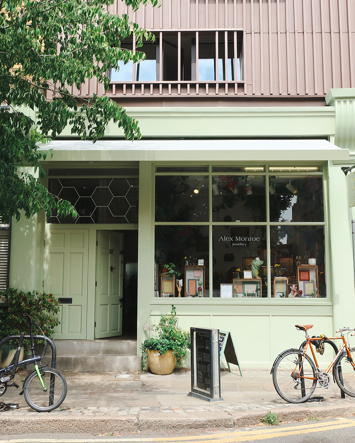 ロンドンブリッジ駅から歩いてすぐの、Alex Monroeのショップ兼スタジオ。