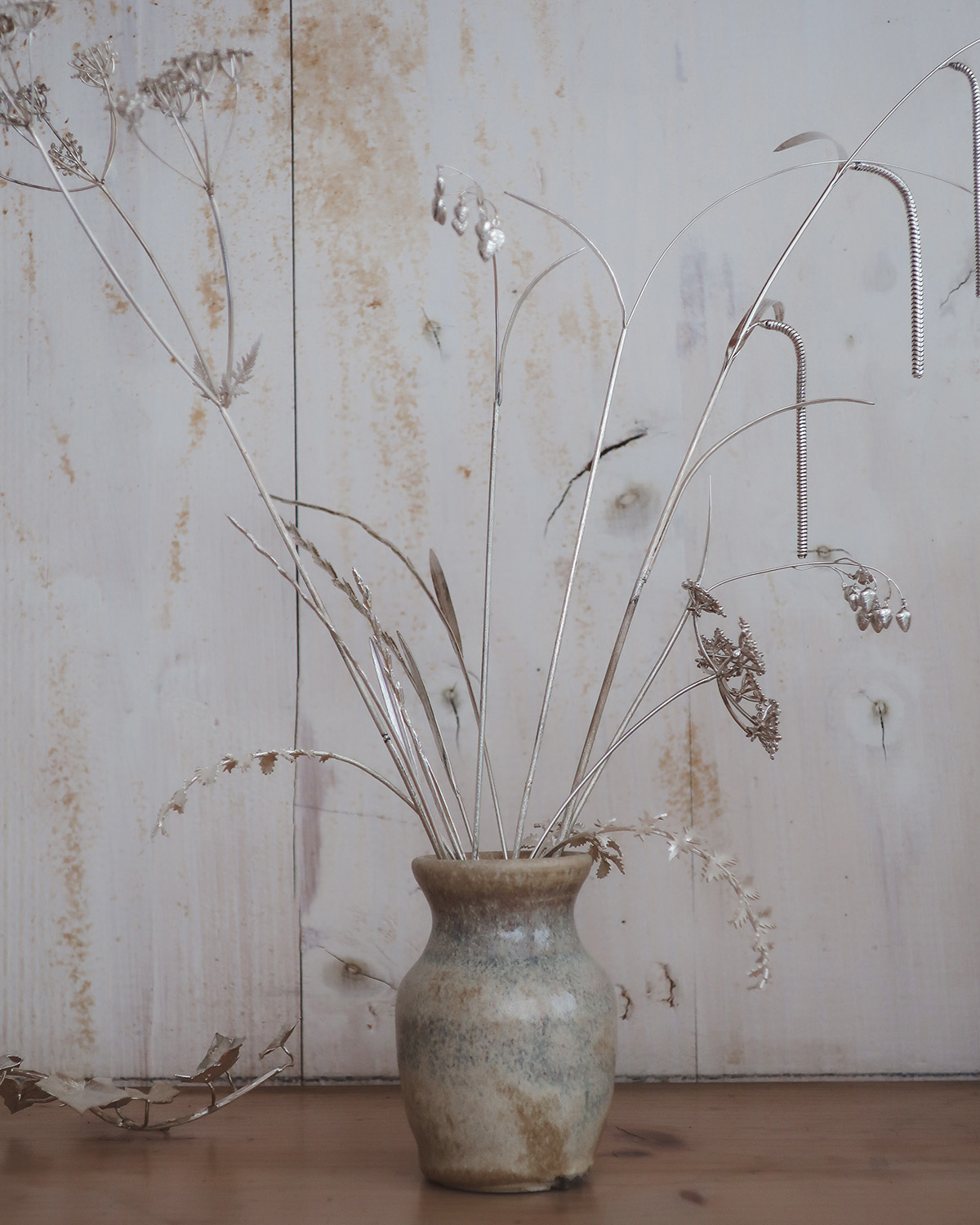 展示作品を準備するにあたって、イギリスで絶滅の危機にある5つの生息地を訪れ、その場で植物をスケッチしたものからオブジェを制作しました。時には、娘も一緒にフィールドへ行きました。
