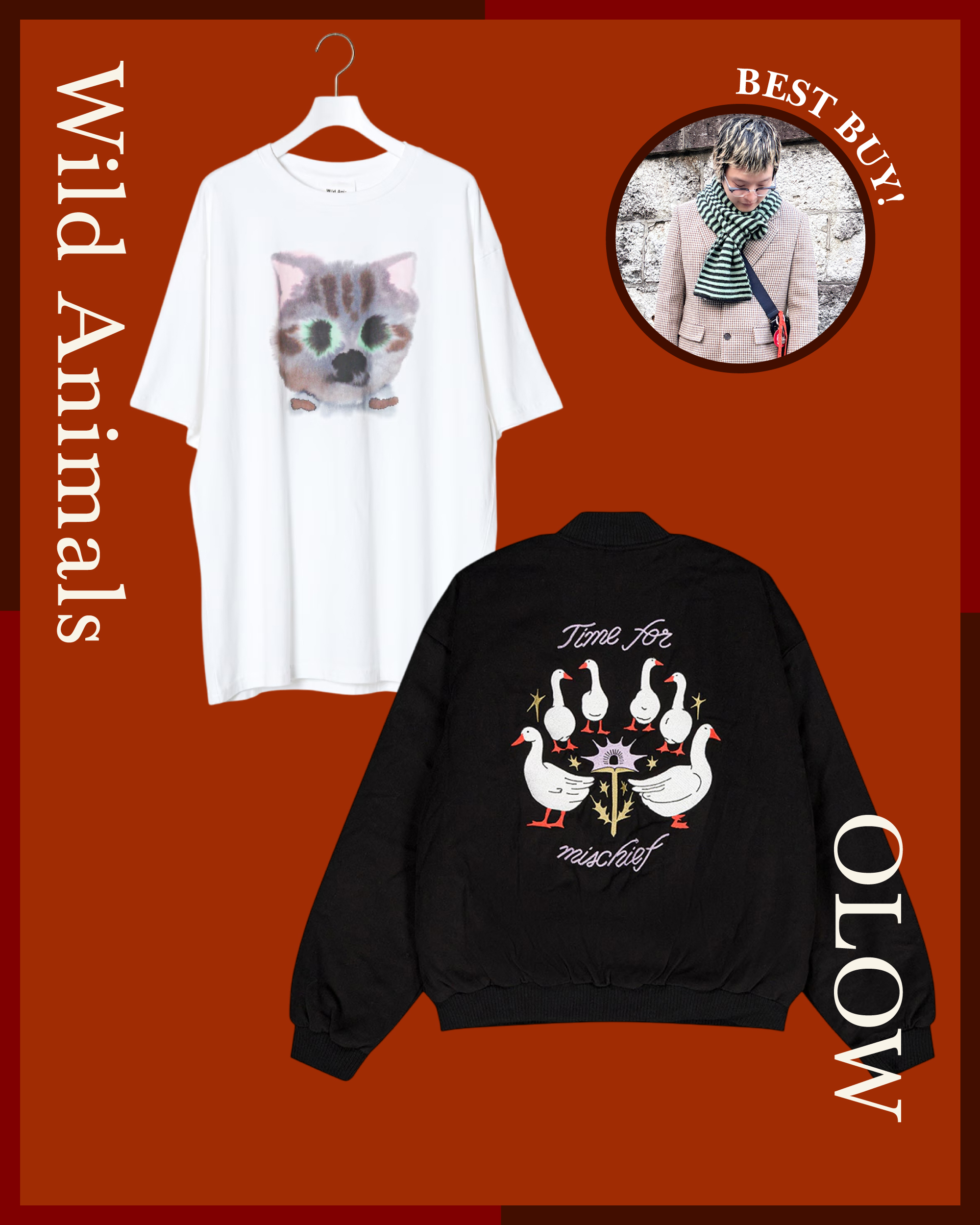 次に狙っているのは、今季から取り扱いを始めた〈OLOW(オロウ)〉。毎シーズン複数のアーティストとコラボレーションしてつくられるデイリーウェアは、着やすさとユーモアのバランスが絶妙。中でも、背面刺繍が印象的なブラックのブルゾンが気になっています。