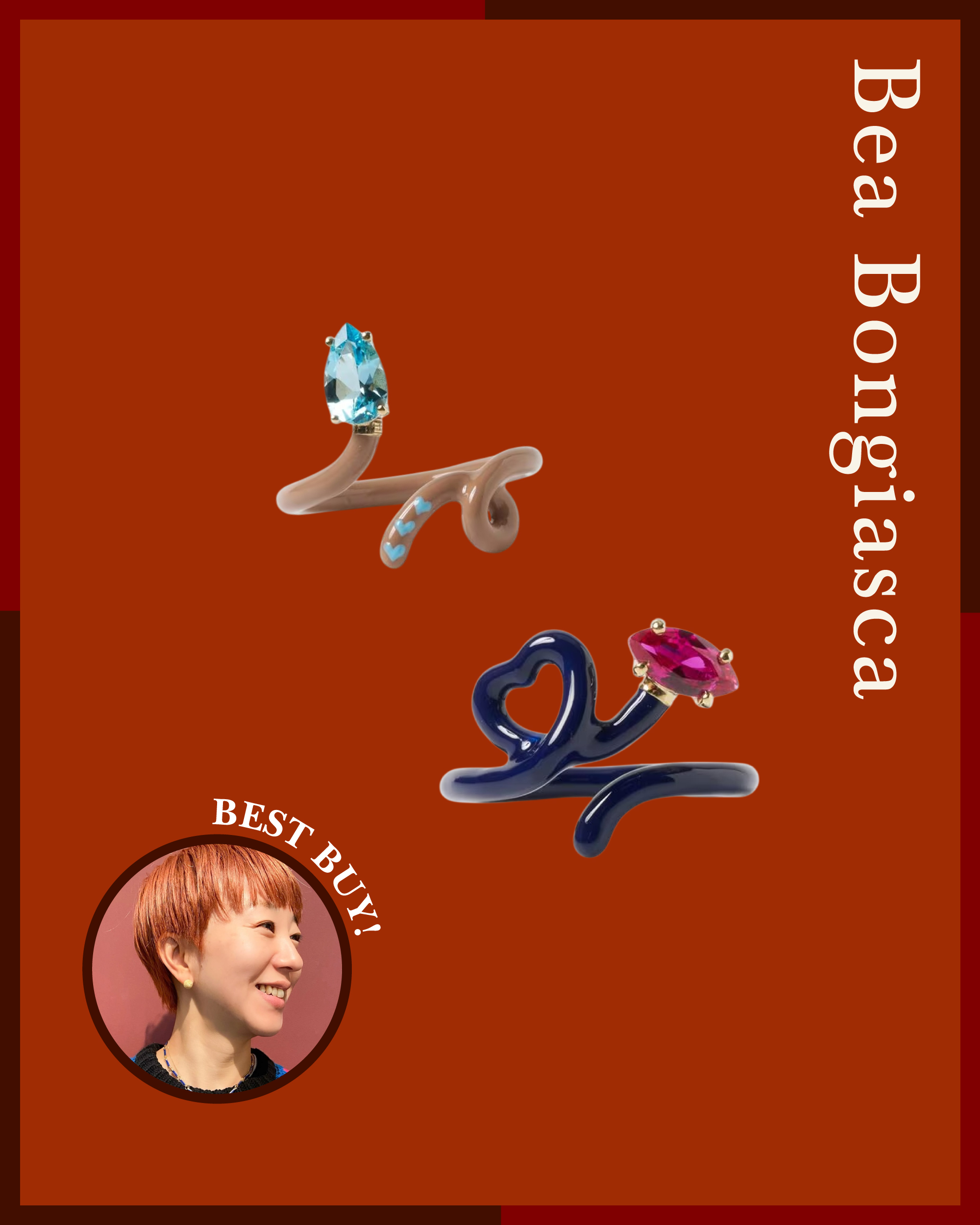 なかでもベストバイとなったのは、ミラノ発ジュエリーブランド〈Bea Bongiasca(ベアボンジャスカ)〉の40周年限定ベイビーヴァインリングと、パリ発〈domestique(ドメスティック)〉のクラフトバッグ。普段地金ジュエリーを選びがちなのですが、ベアボンジャスカのリングは身に着けるアートのようなチャーミングさが魅力。限定が後押しとなり迷わず購入しました。