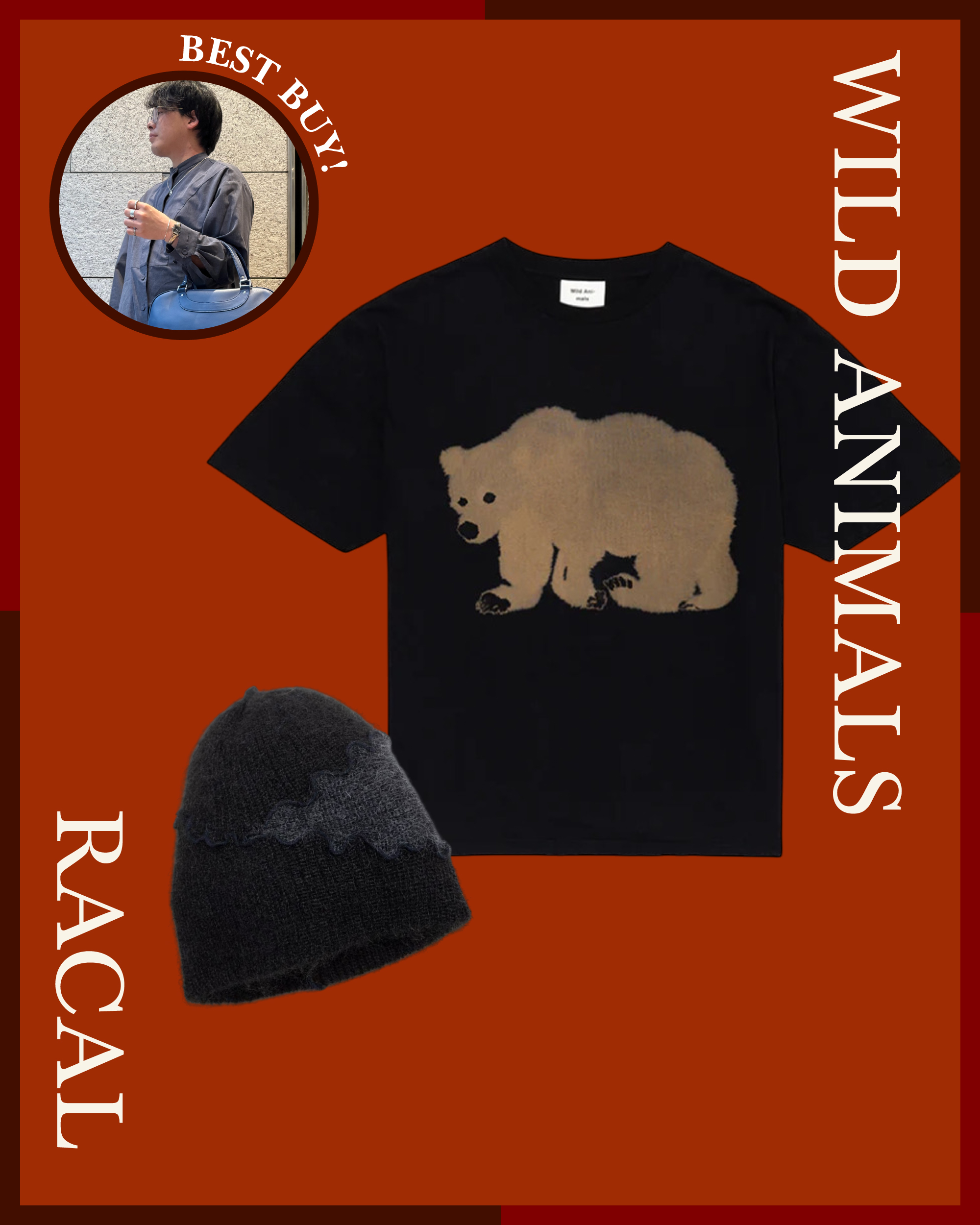 直近では〈RACAL(ラカル)〉というお帽子ブランドから登場したニット帽がお気に入り。シンプルなニット帽ではなく、デザインが入っているのがポイントで、個性が出て楽しめるアイテムです。この季節になると毎年ニット帽やマフラーを探しますが、見比べる間もなく買ってました!