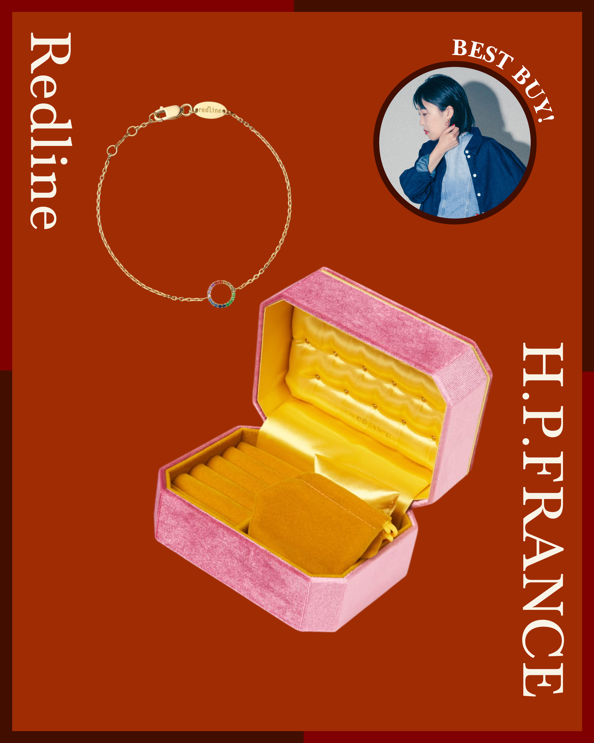 今年中に買いたいのは、〈Redline(レッドライン)〉のMINI AURA RAINBOW ブレスレット。19石のサファイアがつくる繊細なグラデーションは、手元にさりげなく色を足してくれて、シンプルな装いのアクセントにぴったり。単品でも重ね付けでも使いやすく、「まずはこれ」とおすすめしたい、今季注目のマストバイジュエリーです。