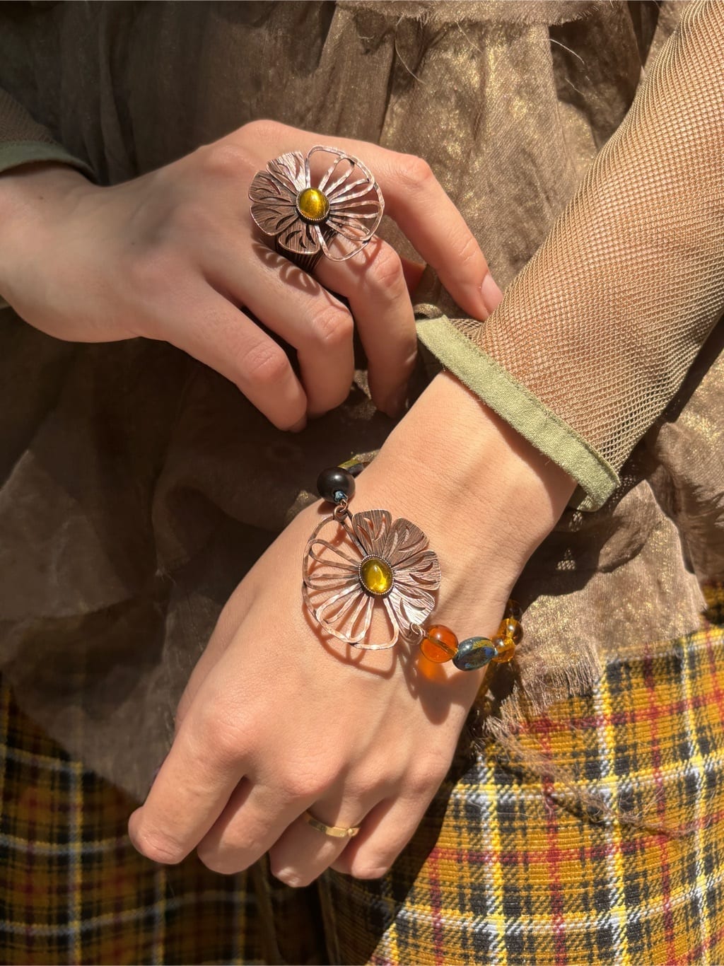 H.P.FRANCE 京都店のスタッフが選ぶおススメのセールアイテムは、Claudine Vitry(クロディーヌ・ヴィトリー)のジュエリー。大胆なお花のグラフィックが印象的なシャツに合わせて、シックにブラックのジュエリーをチョイス。馴染みながらもしっかり存在感を放つアイテムです。