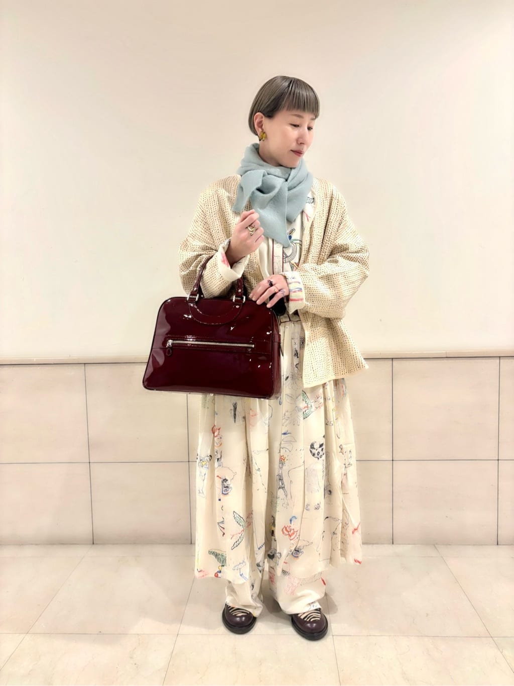 Déclic 有楽町店のスタッフが選ぶおススメのセールアイテムは、8bit.t.d(エイトビット)のカーディガン。きめ細かな織りが特徴的で、肌あたりがよくモチっとしたやわらかさが魅力。とっても暖かいので、寒い日も安心の一着です。かわいいテキスタイルを全身で楽しむ、柄on柄コーデ。