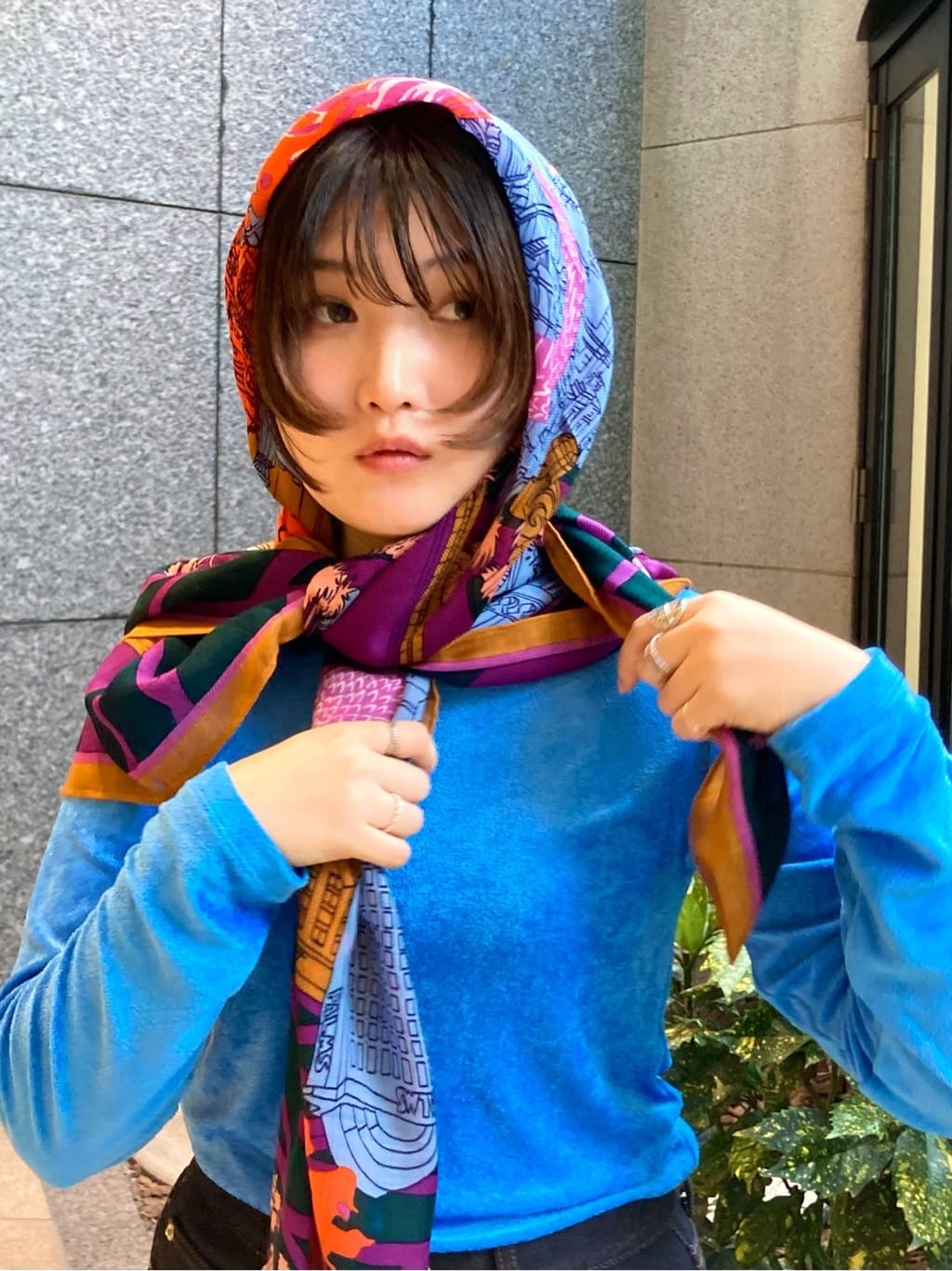 Déclic 大阪店のスタッフが選ぶおススメのセールアイテムは、INOUI EDITIONS(イヌイ・エディション)の大判ストール。約130cm四方のストールは、大胆にワンピース風アレンジをしたり、ターバン風に頭に巻いてみたり、薄手だからこそドレープが美しく汎用性が高い優秀アイテム。パープル×オレンジのパンチの効いた配色でユーモラスに描かれた恐竜たちがとってもチャーミング♡