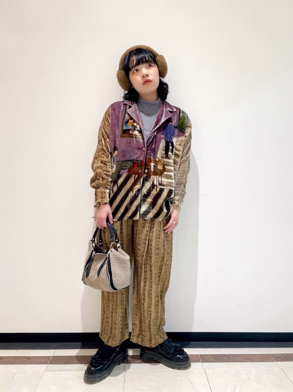 destination Tokyoのスタッフが選ぶおススメのセールアイテムは、8on8(エイト・オン・エイト)のウェア。淡いパープルのグラデーションに、ヴィンテージライクなグリーンのフレアパンツを合わせることで、静かで幻想的な余韻をつくりだすコーディネートに。カラフルなキャンディ柄がキュートなgroundsを合わせて、遊び心をプラス。