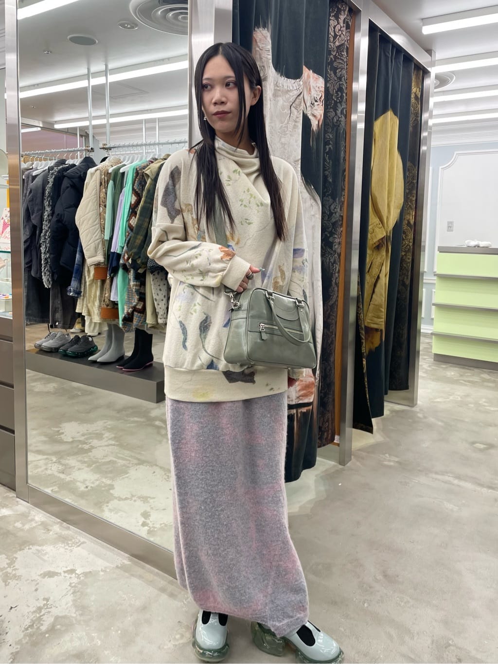 destination Tokyoのスタッフが選ぶおススメのセールアイテムは、ANNTIAN(アンティアン)の秋冬コレクション。パステルカラーで統一してコーディネート。ウール地のスウェットは、薄い生地感ながらも保温性もあり、まさにウールのいいとこどりな一着。クリームホワイトにプリントされた生き生きとした植物のコントラストが絶妙でお気に入り。