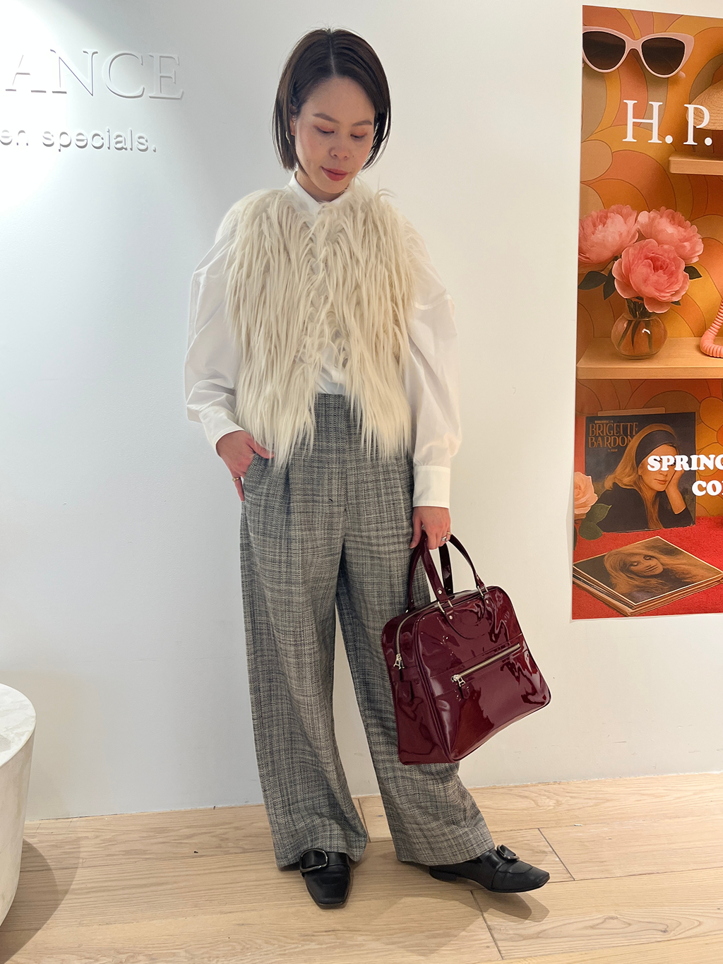 OFFICEスタッフが選ぶおススメのセールアイテムは、support surface(サポートサーフェス)のエコファーベスト。シャツの上にサッと羽織るだけで華やかな印象に仕上がります。ちょっとしたお出掛けにぴったりのアイテム。