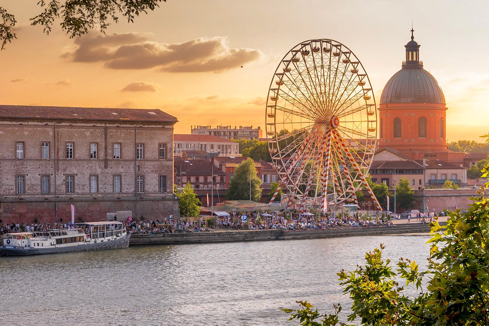 夕日に染まるトゥールーズのガロンヌ川沿い。