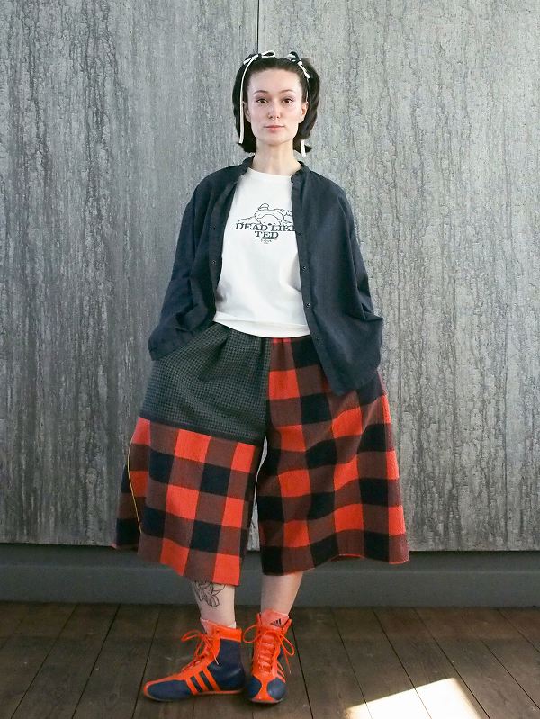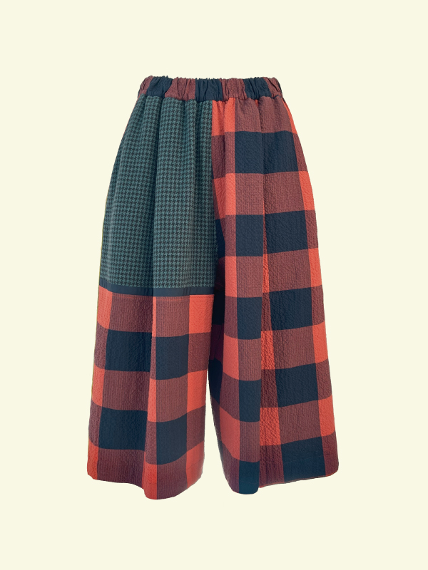 新型のパンツにはパッチワークを取り入れ、視覚的なアクセントと軽快なムードを表現しています。