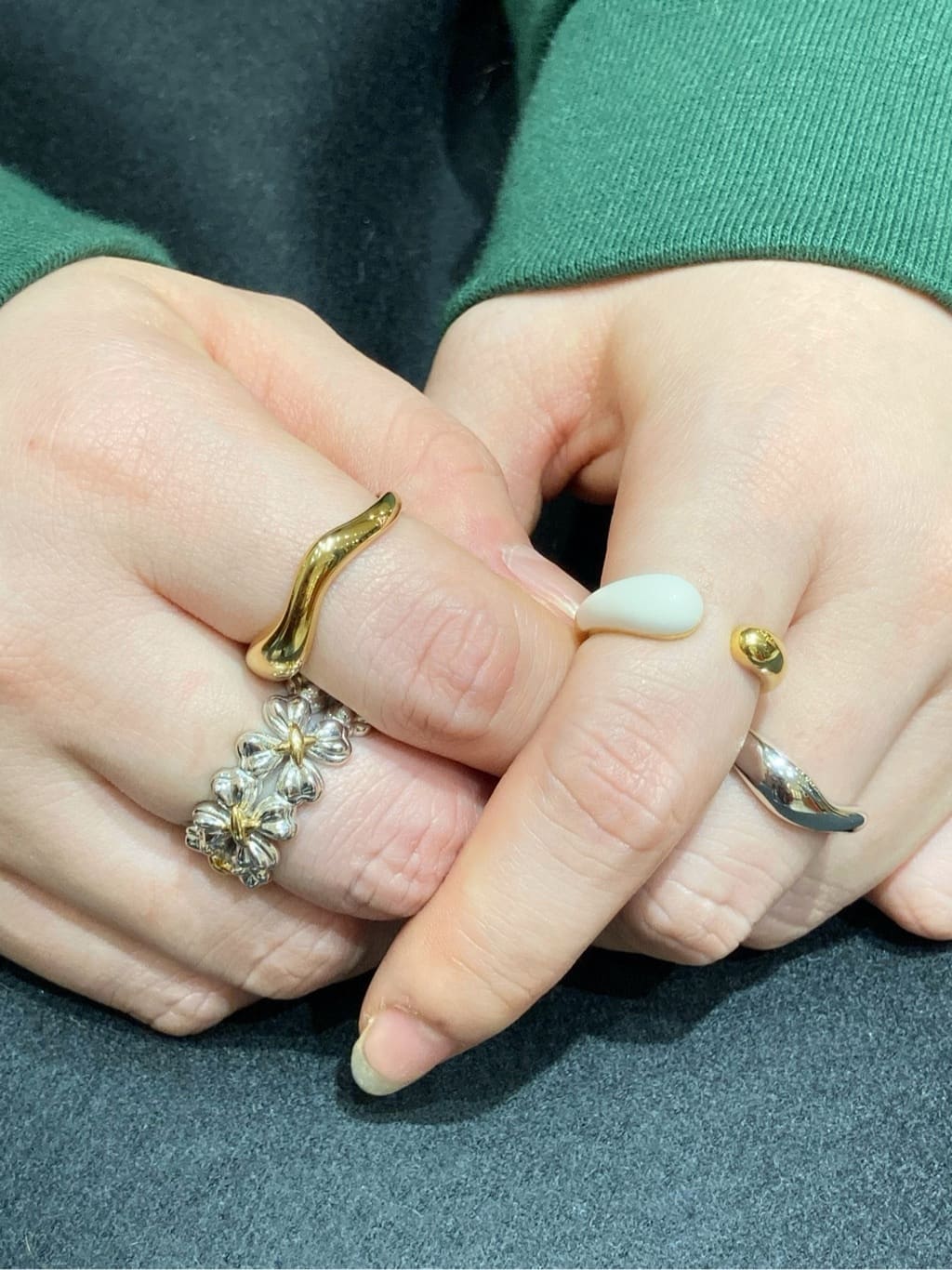 Déclic 大阪店のスタッフが選ぶおススメのセールアイテムは、Déclicで揃うジュエリーたち。SSIL(エスシル)の立体的なクローバーモチーフのリングはボリューム感があり手元を華やかにしてくれます。ラッキーモチーフのクローバーは新年にぴったり。LUNAYA (ルナヤ)のリングのエナメルカラーが程よいアクセントに。