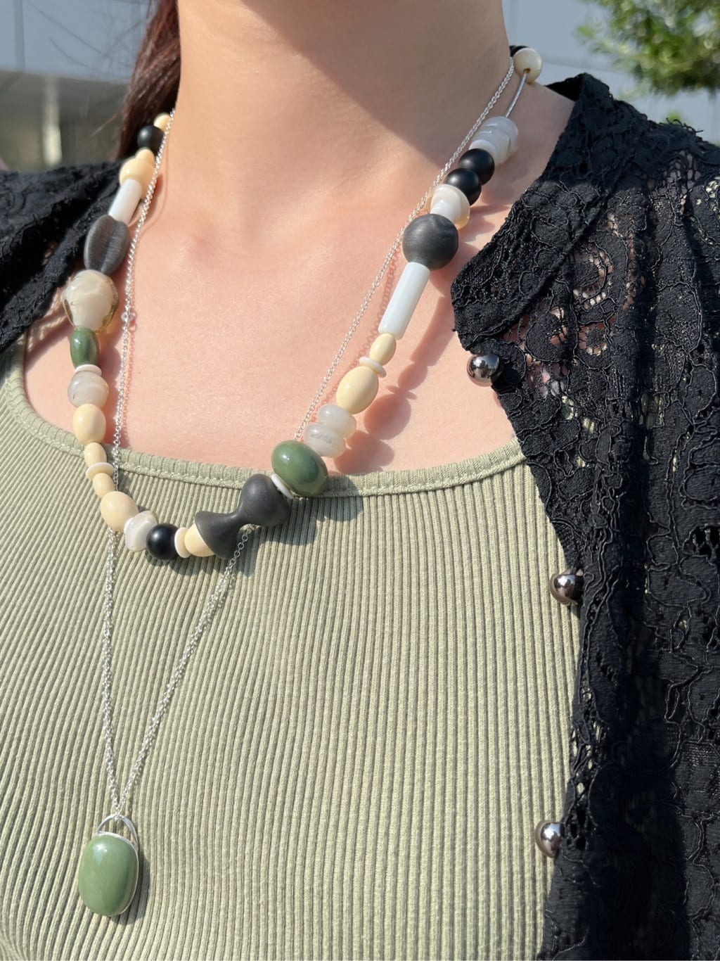 H.P.FRANCE BIJOUX 新宿店のスタッフが選ぶおススメのセールアイテムは、Helena Rohner(ヘレナ・ローナー)のネックレス。ジュエリーに合わせてお洋服もアースカラーを意識。ボリュームもありつつ軽さもあるので重くなりすぎずにお使いいただけます。