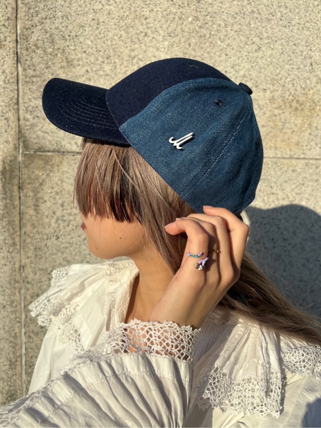 H.P.FRANCE BIJOUX 丸の内店のスタッフが選ぶおススメのセールアイテムは、MUHLBAUER(ミュールバウアー)のキャップ。H.P.FRANCE 40周年を記念してつくられた特別モデルです。デニム素材でレースのブラウスなどフェミニンなお洋服の外しにも使えるアイテムです。