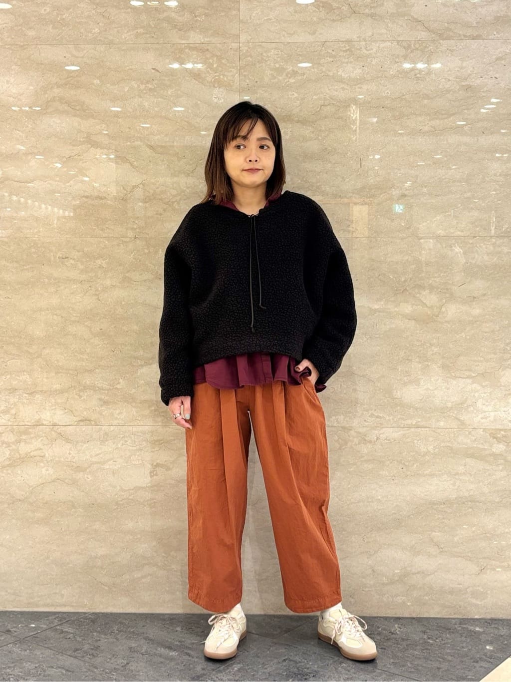 ウエストはゴムのイージー仕様ですが、大き目に取ったタックと裾にかけてゆるやかにテーパードする太目のシルエットが脚のラインを綺麗に見せてくれる上品な仕上がりの定番モデルのパンツです。