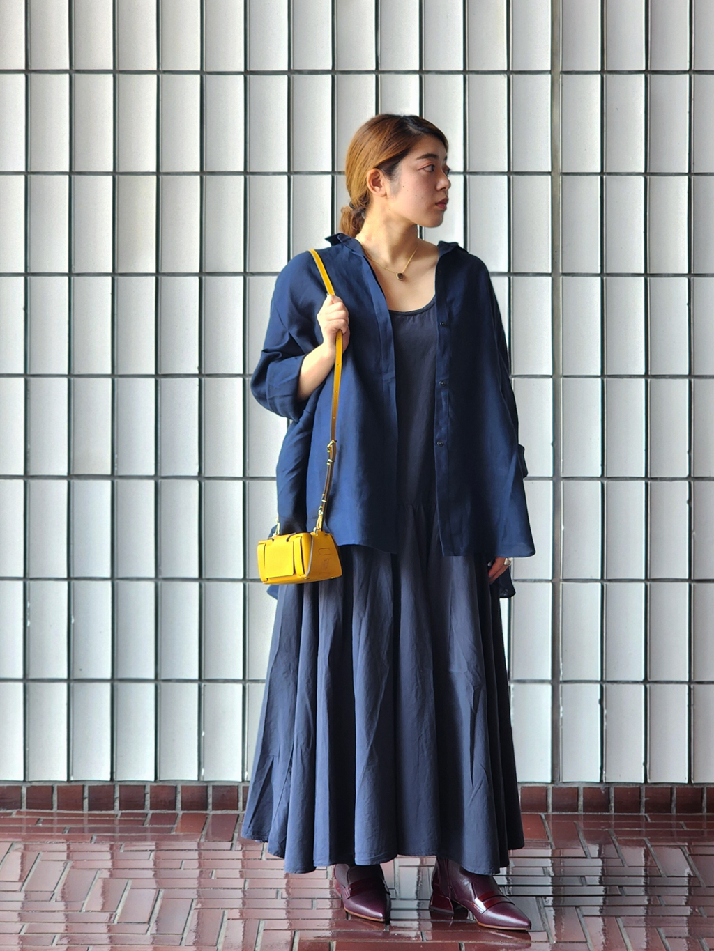 ブランドのアイコン的なロングランのノースリーブのワンピースで、1枚での着用はもちろんのこと、インナードレスとして着用することで、上に重ねたワンピースのスカートのボリュームを強調したり、短めの丈感のワンピースのスタイリングで裾の長さをプラスできます。また、ブラウスを重ねることで、スカートのようにも着用できる人気アイテムです。