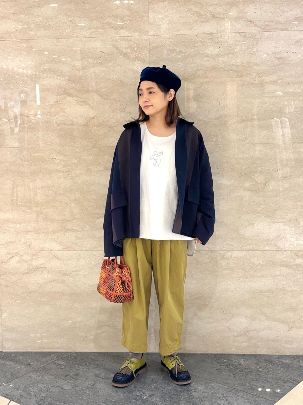 ブランドのアイコン的なロングランのジャケットで、大きく丸みを帯びた襟と、シンプルながらも目を引く大き目なポケットが印象的。ゆったりとした身幅に短めの袖丈で着用するとすっきりとした印象です。同素材のパンツとのセットアップや、ワンピースとのアンサンブルでの着用がおススメです。