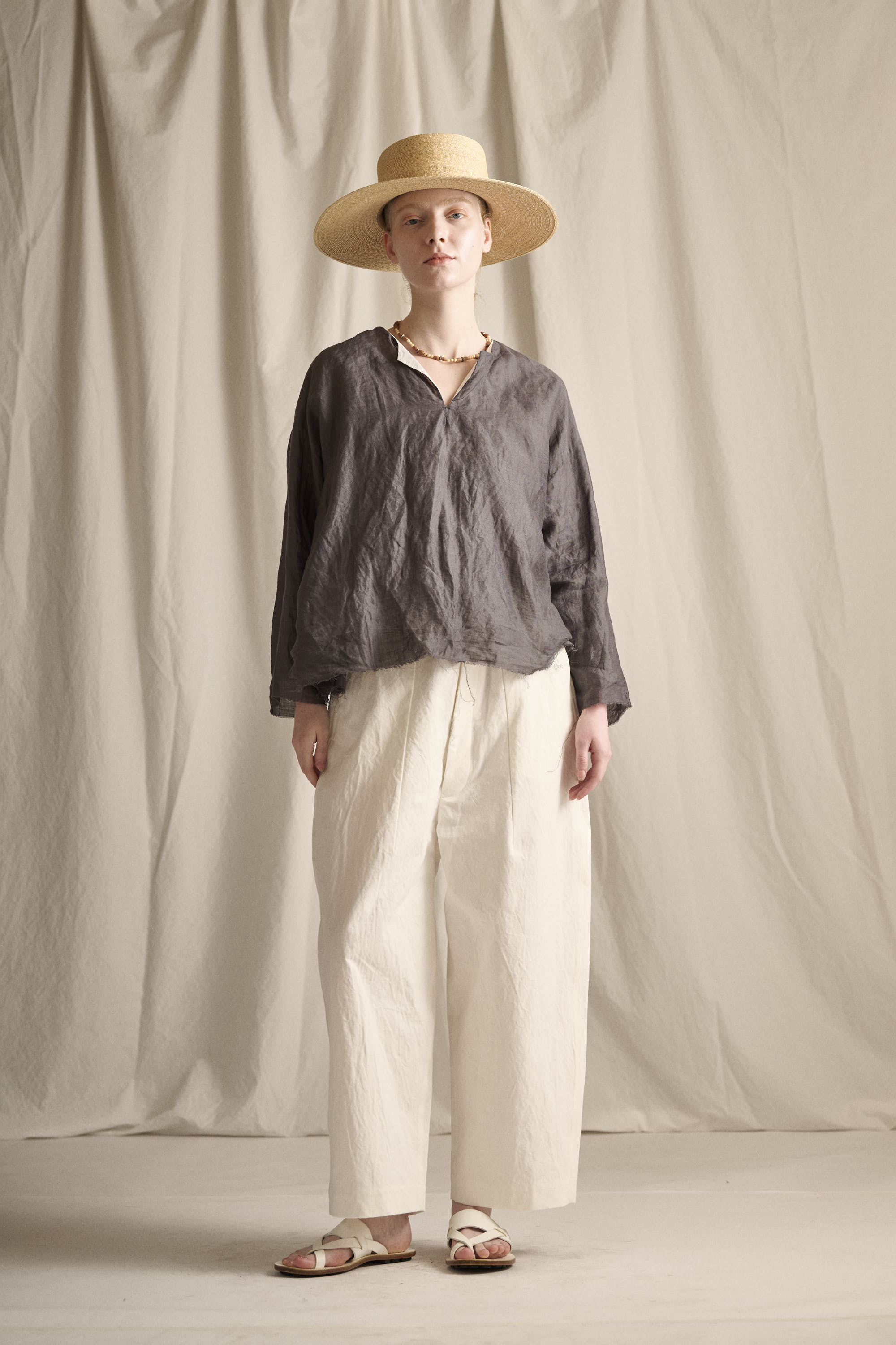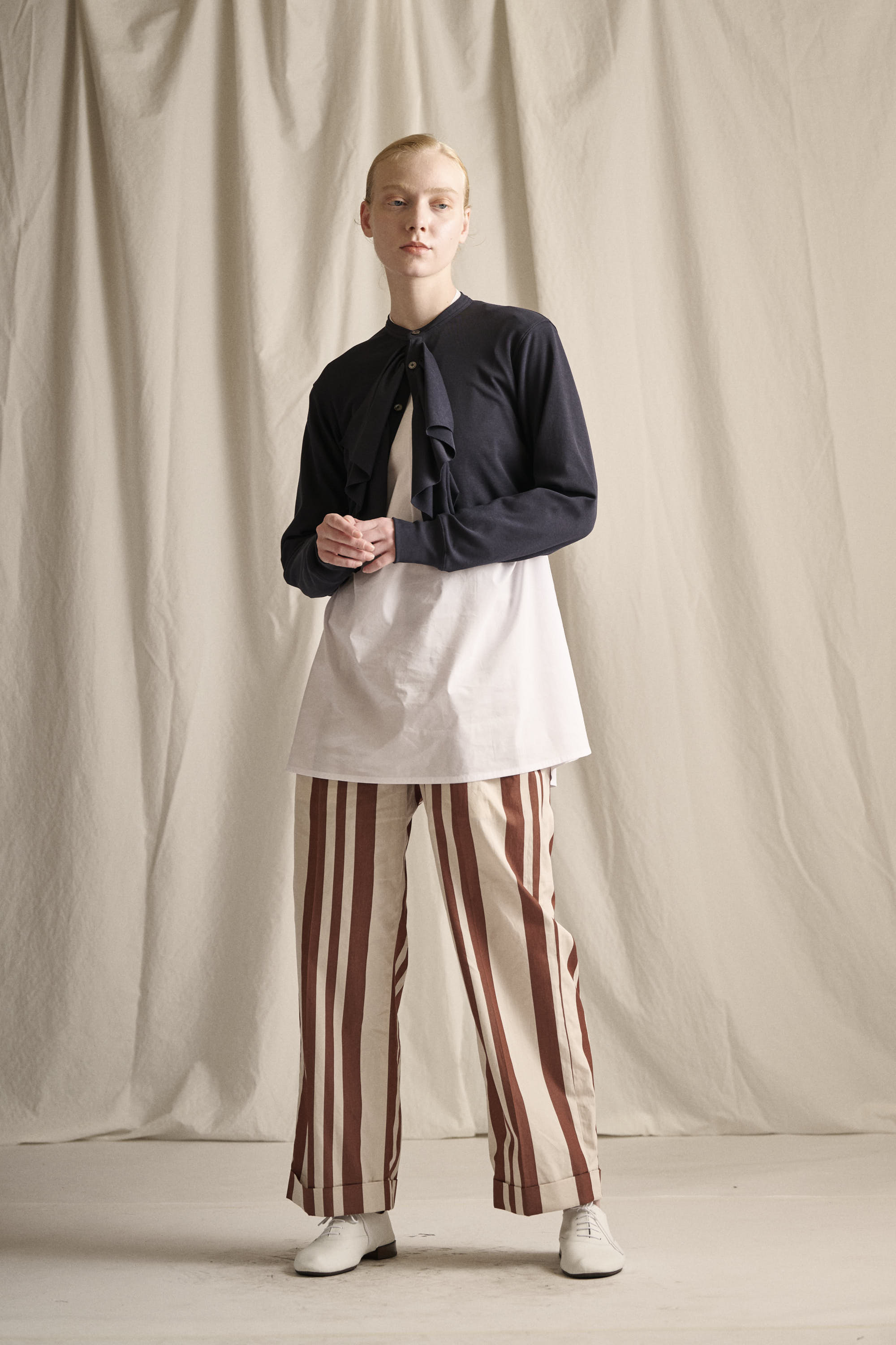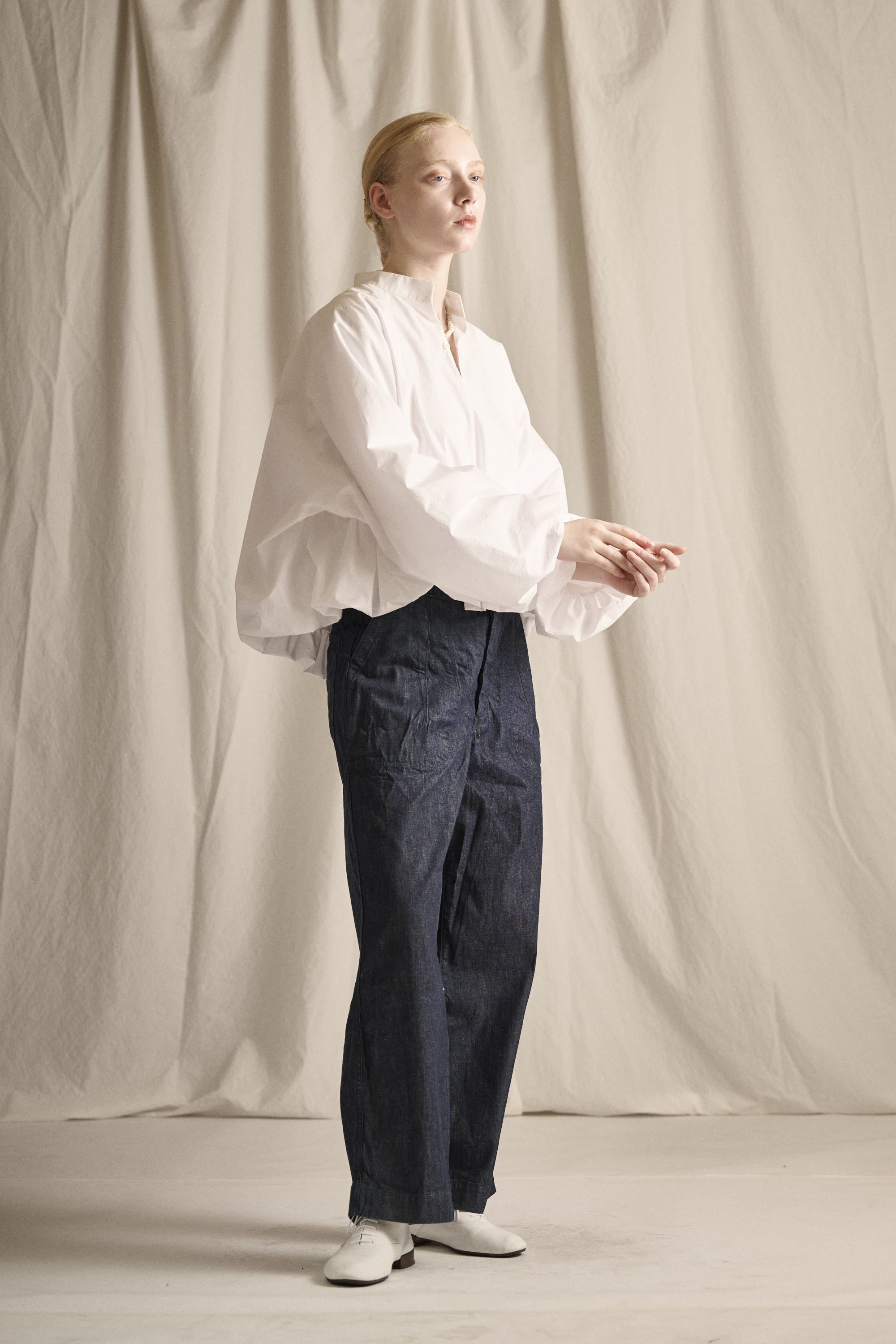 デザイナー・乗秀幸次が理想とするのは、着る人の経験や価値観を尊重し、人間の多様性を後押しするワードローブ。コレクションルックは存在しますが、それはあくまで乗秀自身が提示するひとつのスタイルにすぎません。完成させるのは、身にまとうあなた自身です。