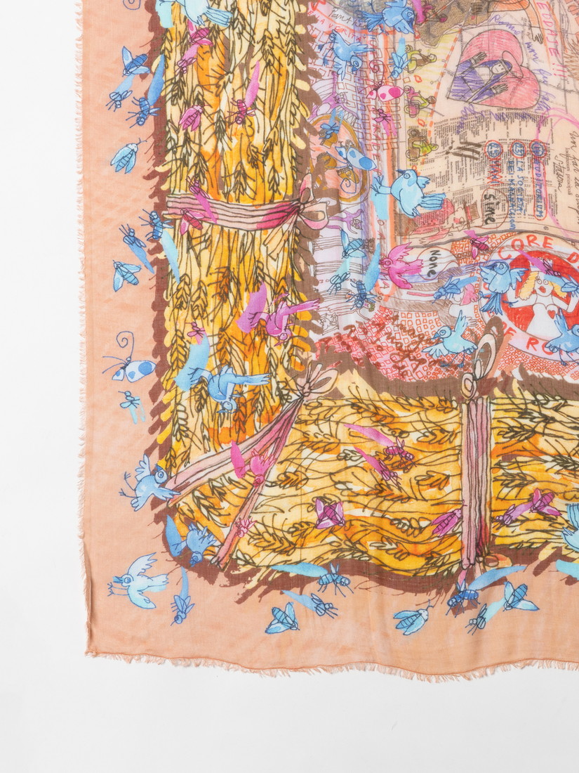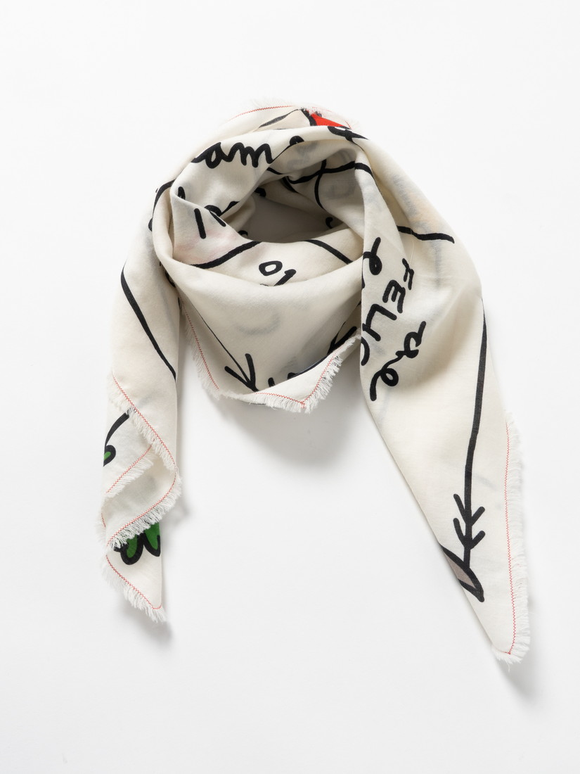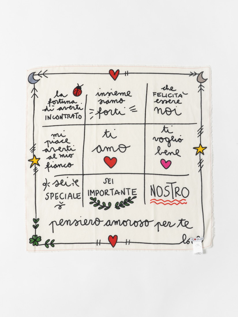 イラストと言葉で紡ぐ「ショート・ラブ・メッセージ」プロジェクトで知られるアーティスト。今季より、Faliero Sartiとのコラボレーションがスタート。愛や優しさ、インスピレーションに満ちた言葉をプリントに織り込み、スカーフ一枚一枚をポジティブで慈しみに溢れるメッセージへと昇華。「ありがとう」「愛している」といった特別で真摯な想いを、より豊かに伝える方法として生まれたこのプロジェクトは、身にまとう人の感情や可能性をそっと引き出します。