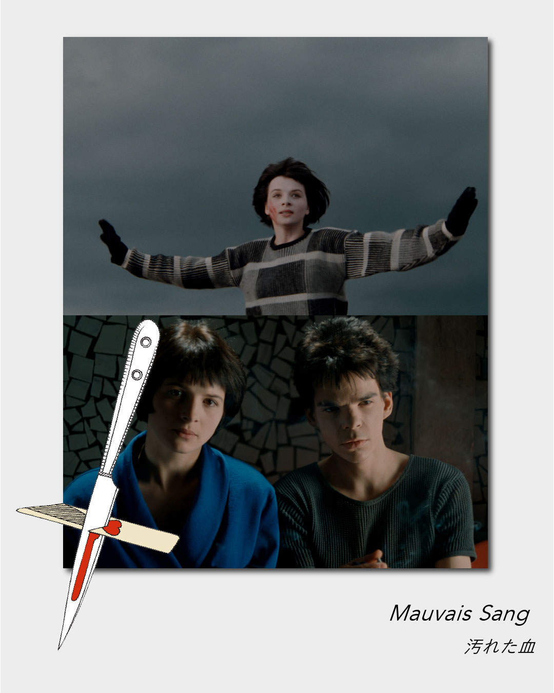 今回手がけたイラストレーションは、文字通りの解釈ではなく、カラックス作品の雰囲気や感情の強さをグラフィック言語で表現する手段として構想したものです。暗示やリズム、そしてムードを通して、直接的な表現のイメージではなく、映画的な物語の反響のように機能することに興味を持ちました。