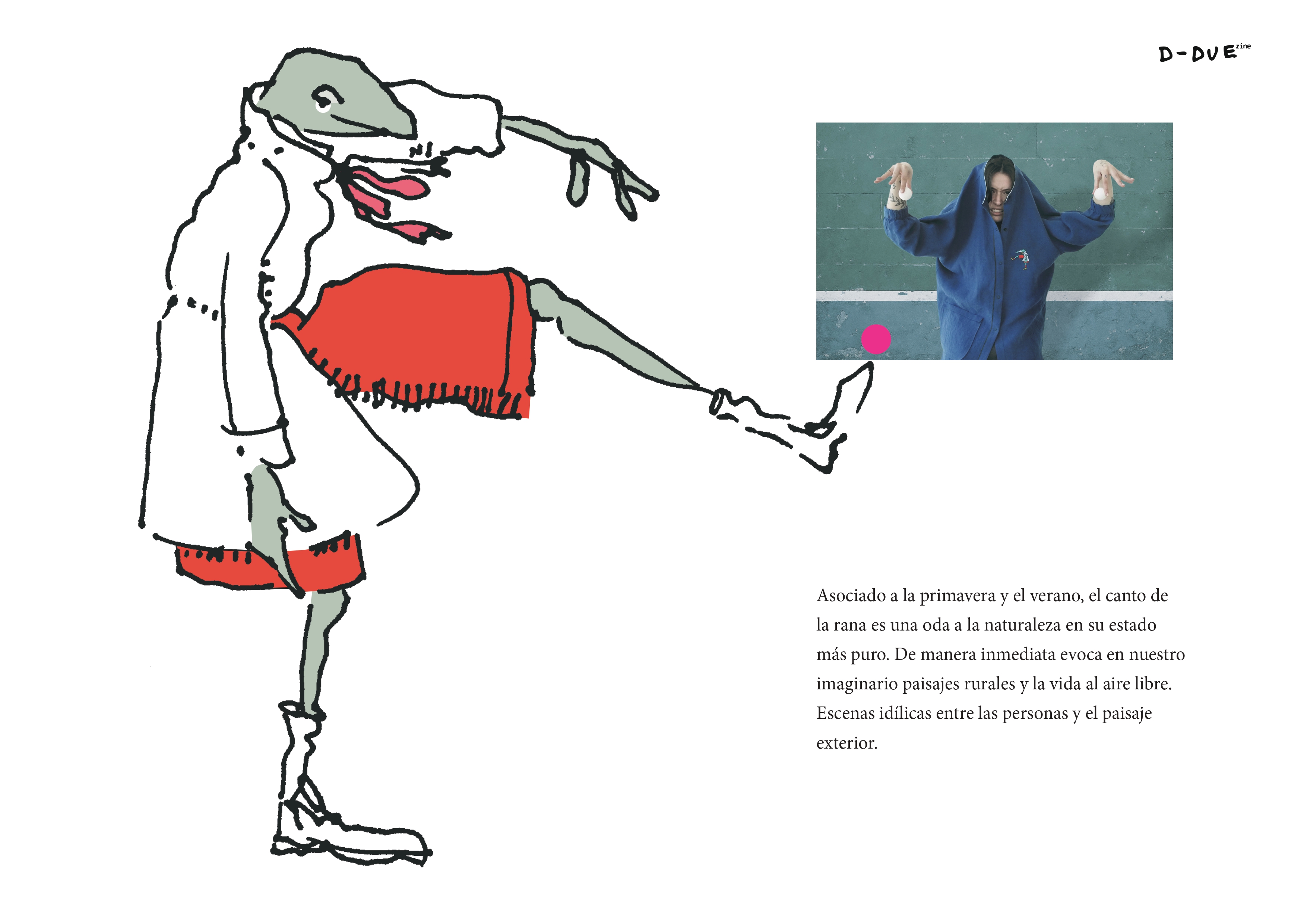 D-dueのクリエイションの原風景であるスペイン・ガリシア地方は、雨が多く湿潤な土地。 川や湿地が点在し、豊かな自然のなかで多くのカエルたちが暮らしています。 水と陸、ふたつの世界を行き来するカエルは、 環境の変化にとても敏感な生き物。 その存在は 自然が健やかであることを示す、美しいサインでもあります。