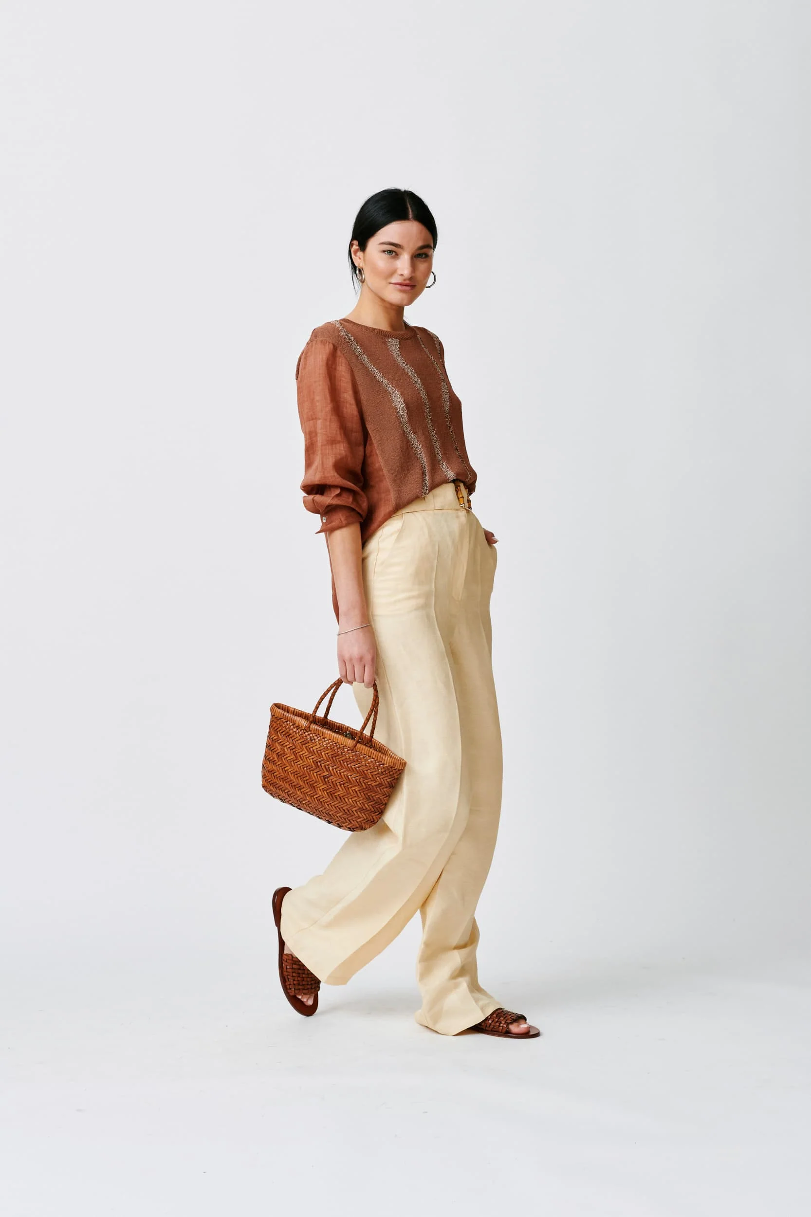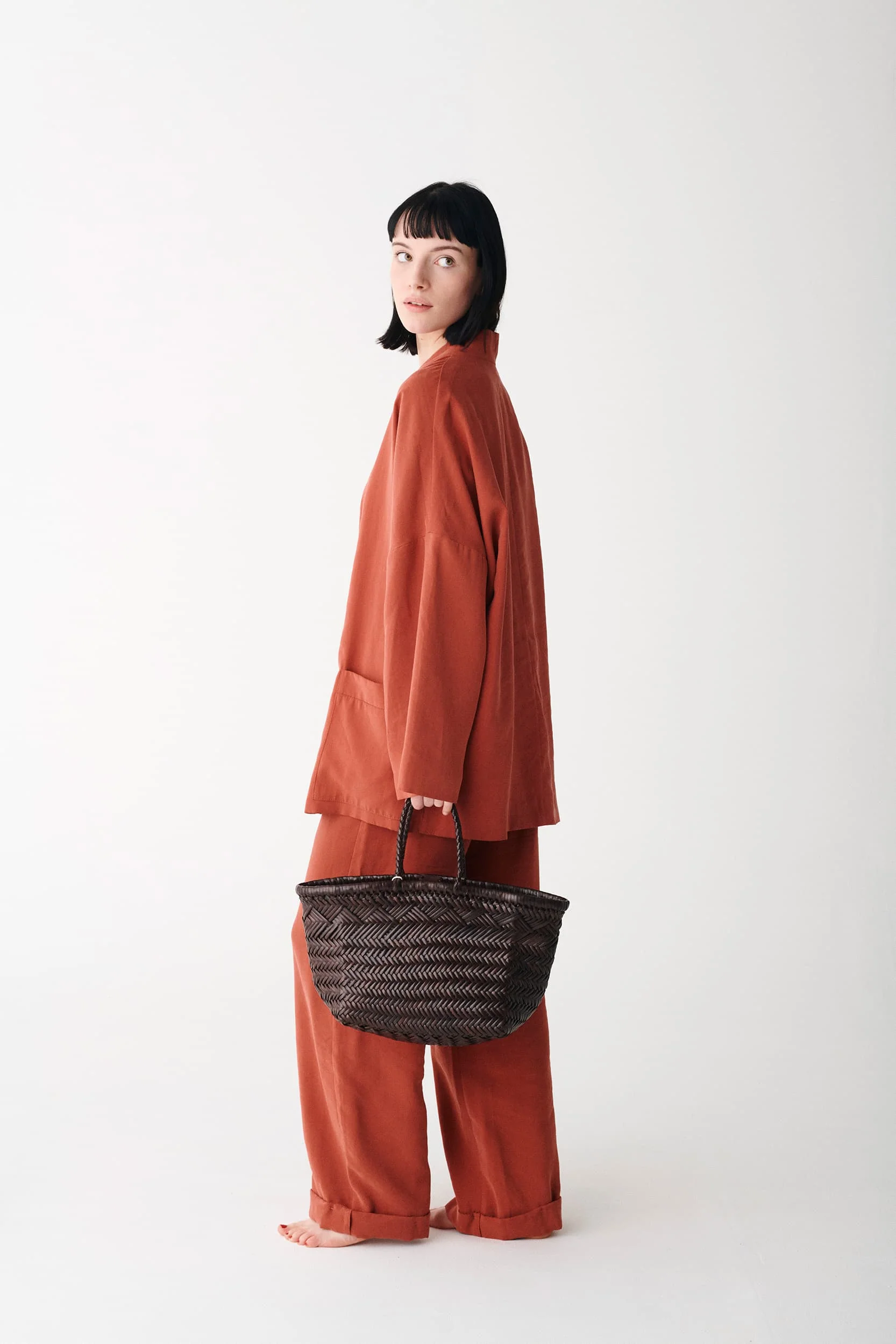 ブリュッセル拠点のデザイナーがインドの職人と協業するレザーバッグブランド。世界各地の伝統的なかご細工に着想を得た独自の編み技術を特徴とし、現代の暮らしに寄り添う機能性とタイムレスな美しさを追求している。使い込むほどに深まる風合いも魅力のひとつ。バッグの内側には旅人の守護聖人SAINT CHRISTOPHERのメダルが添えられている。