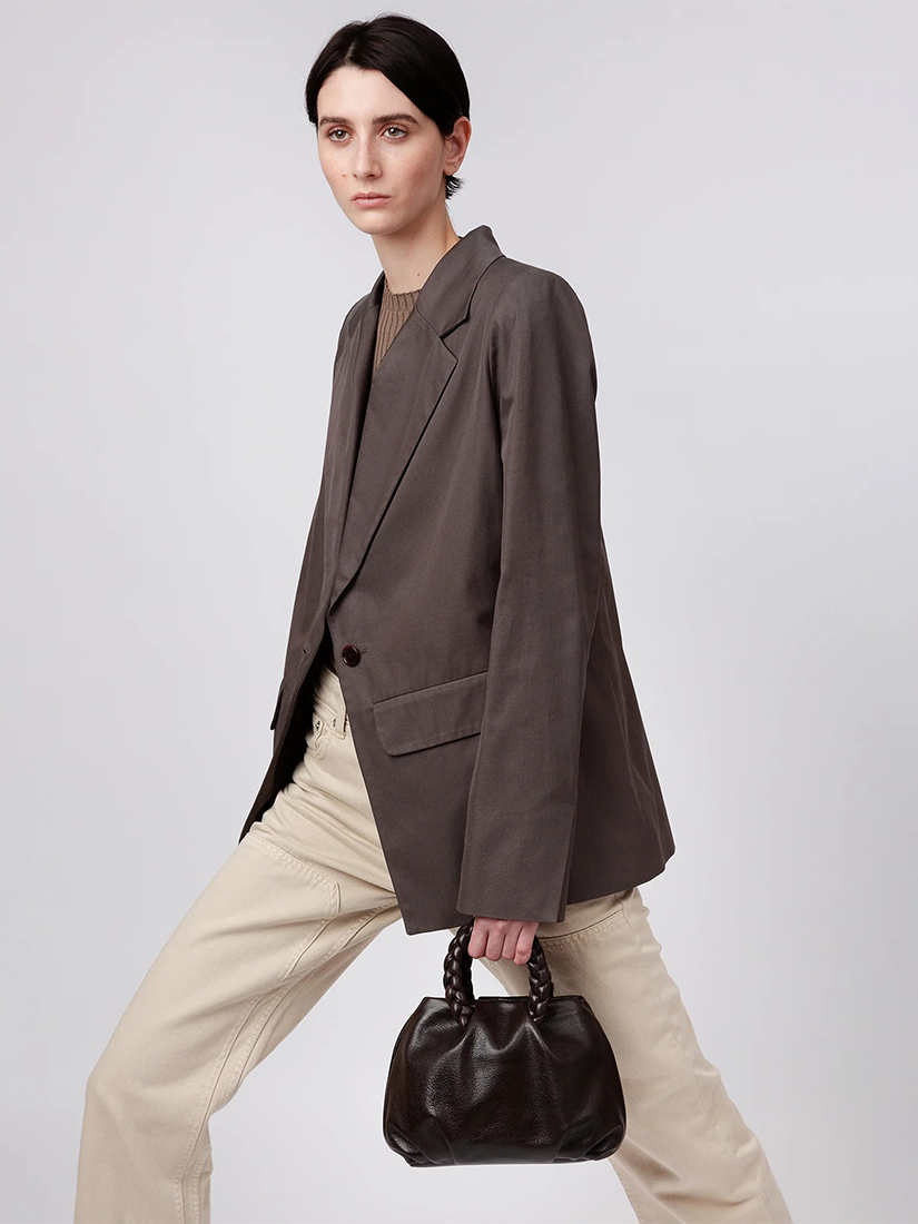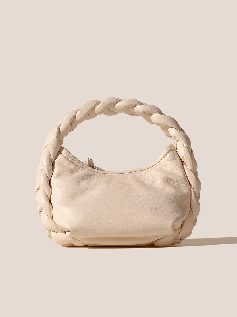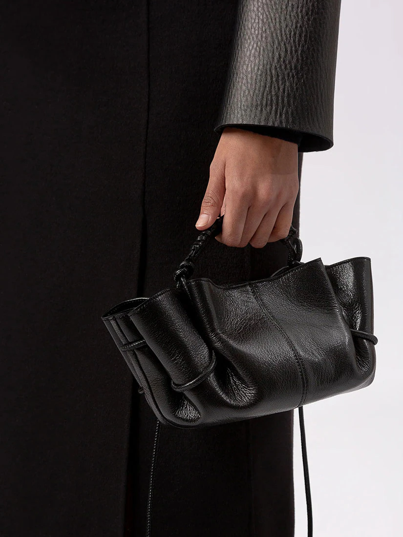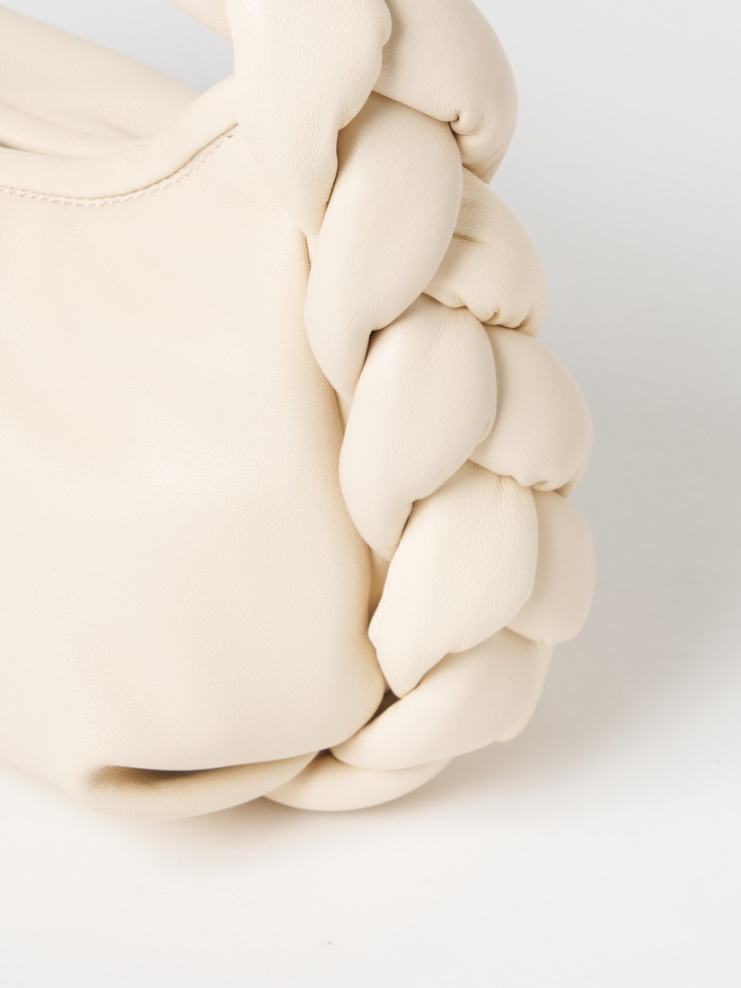 編み込みハンドルのディテールが特徴のミニバッグ。細身の調節可能なストラップ付きで、クロスボディとしても、手持ちバッグとしてもお使いいただけます。しなやかなラムスキンを使用し、内側はオーガニックコットンで仕立てられています。