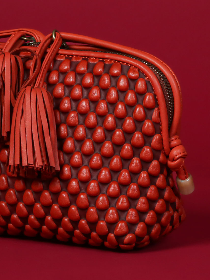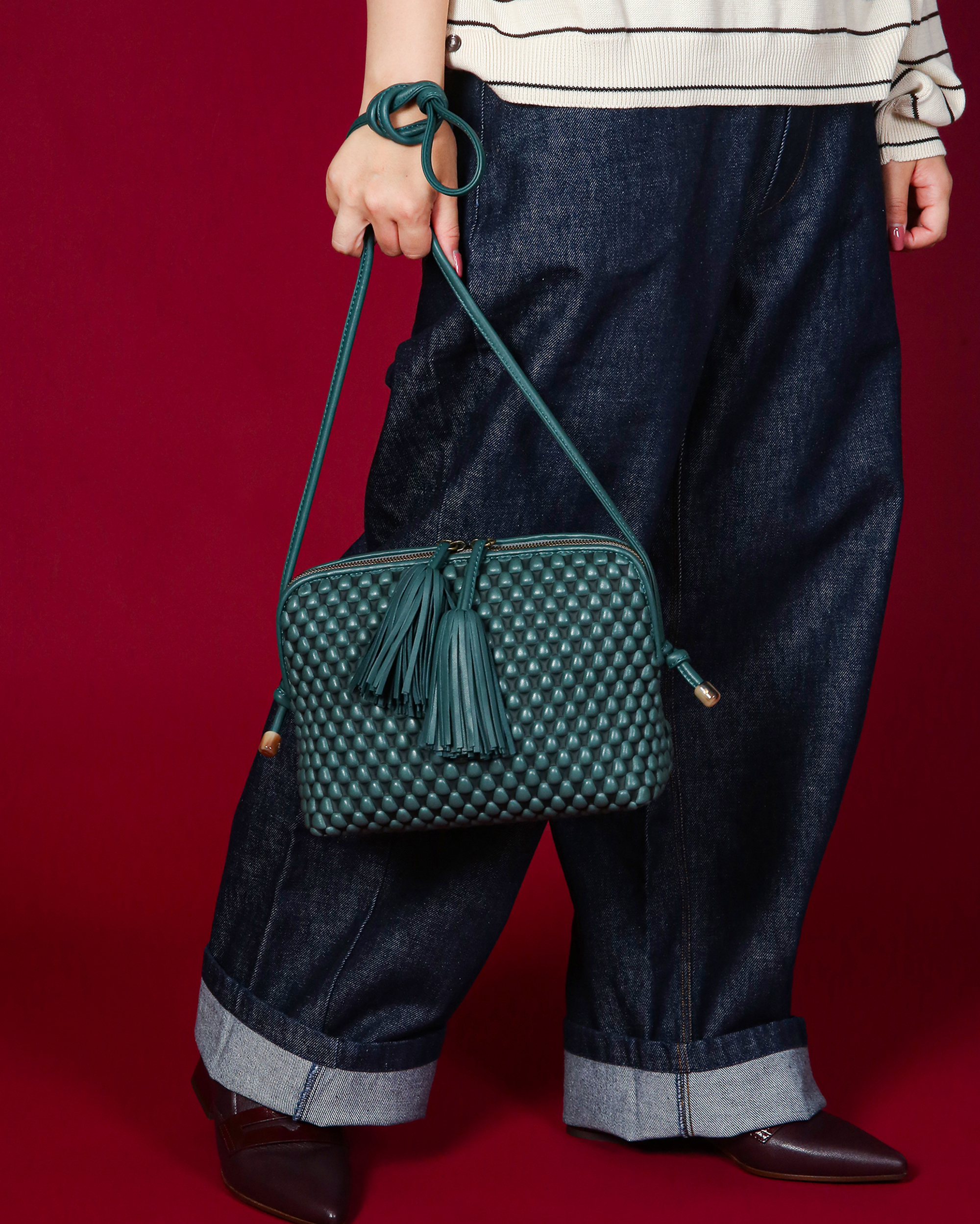 ブランドを象徴する「バブル・バッグ」は、ビロードのように柔らかなスペイン産ラムスキンを使用し、マドリードの熟練職人が一点ずつ手作業で仕上げる特別な存在。レザーに立体的な表情を生み出す“バブル”の質感は、長い蒸し工程を経て完成する、繊細で高度な技術の結晶です。