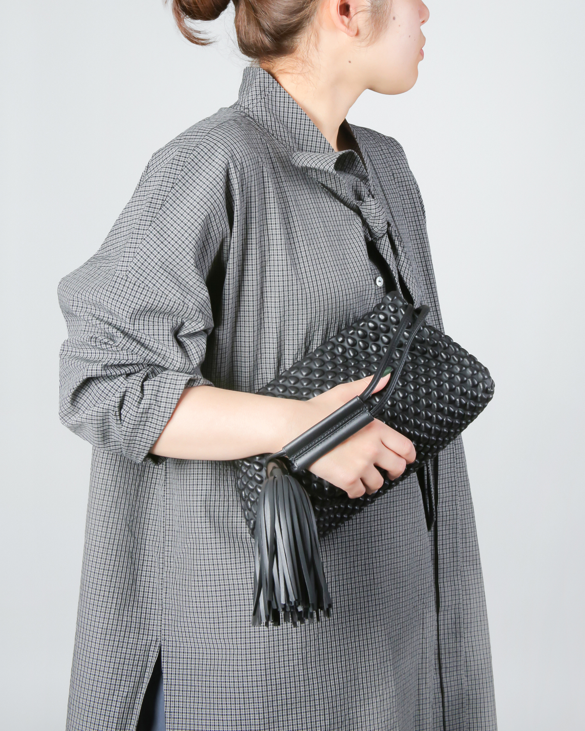 長さの異なる2本の大きなタッセルがアイコンとなった、シンプルなデザインの「GIZMO」。間口が大きく開くため中身の出し入れがしやすく、ブランドらしい存在感とコーディネートのしやすさを兼ね備えた人気モデル。