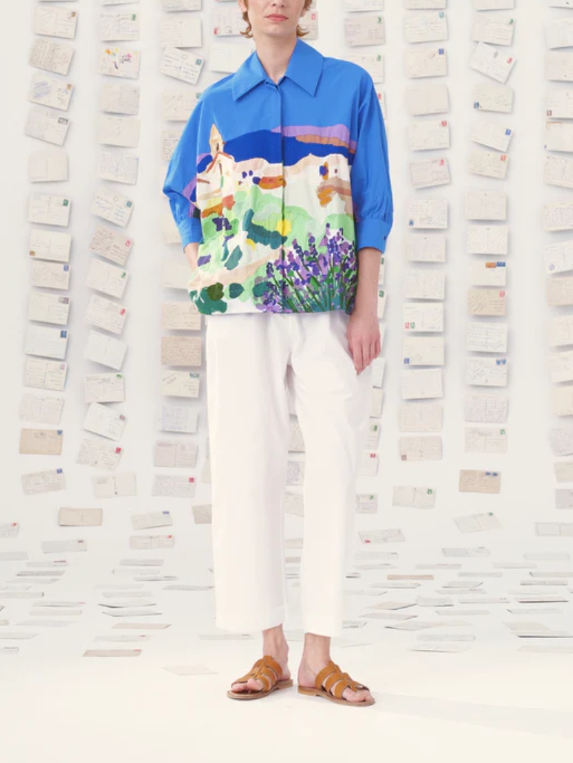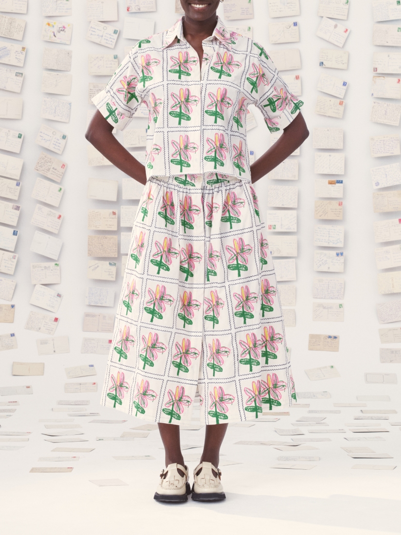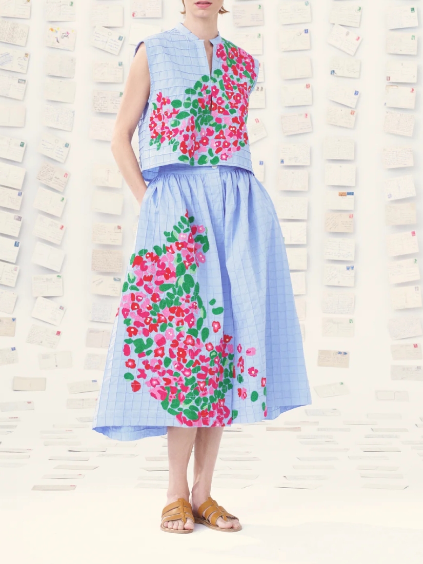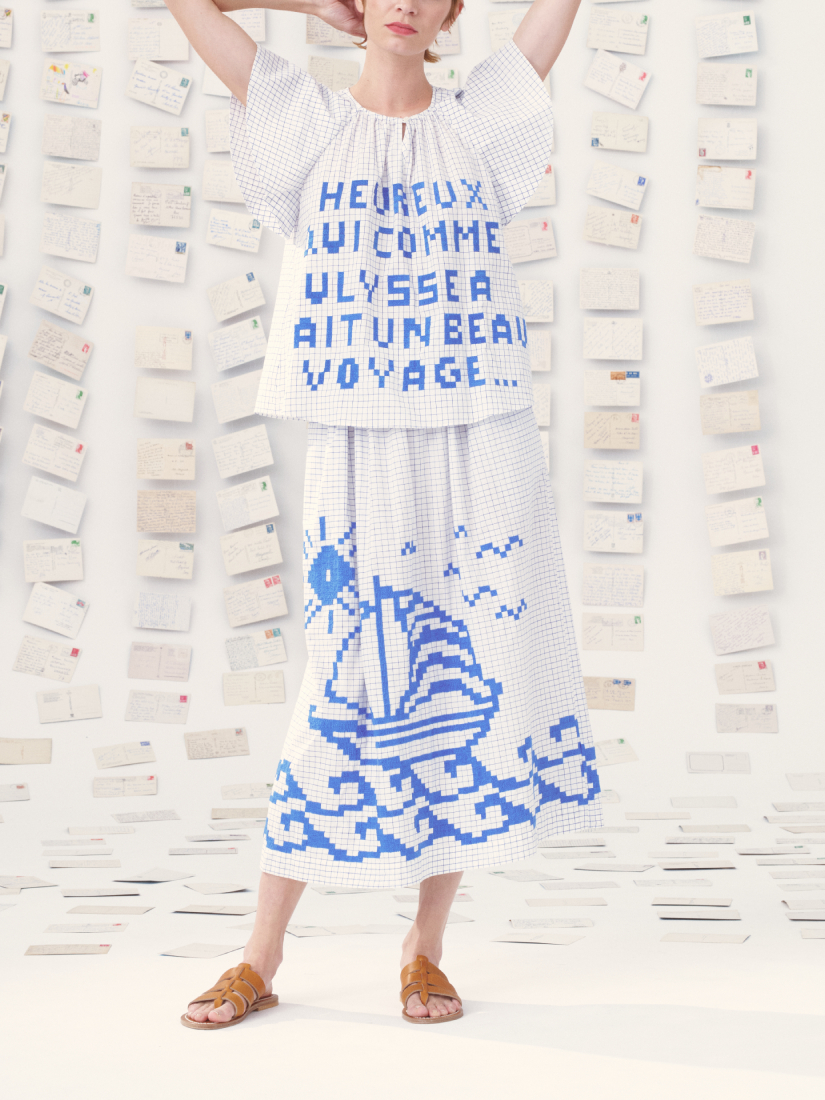 今季は、デザイナーの祖母の家で見つかった古いポストカードから着想を得て、プロヴァンスとキクラデスの風景や色彩を、刺繍やプリントで軽やかに描き出しています。旅するように心を解き放つ、詩的でやさしいコレクションをぜひお楽しみください。